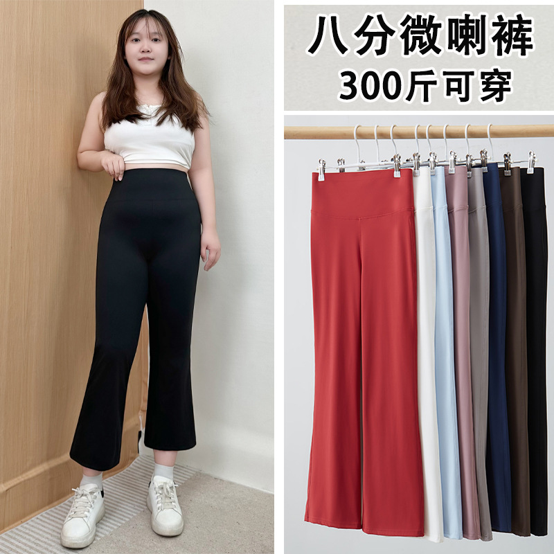 300斤特大码微喇裤八分裤健身裤高腰夏季薄款女弹力高弹休闲外穿