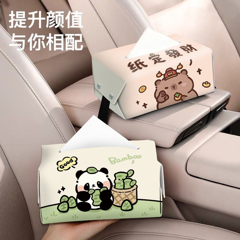 卡皮巴拉抽纸盒车载皮革纸巾盒挂式卡通女汽车创意抽纸盒纸巾挂袋