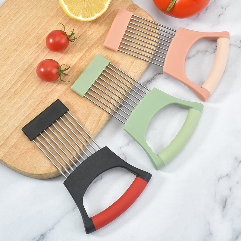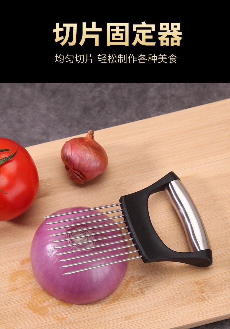 ステンレスプラスチックハンドル玉ねぎ針松肉針レモンスライサーキュウリジャガイモ果物野菜固定器