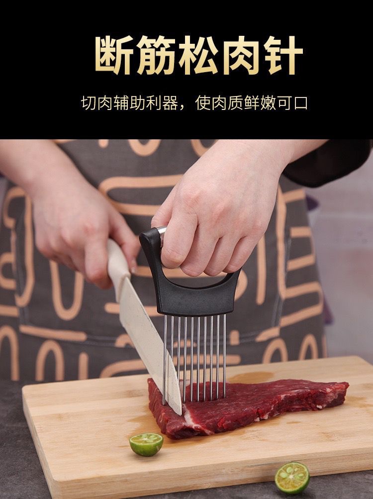 スポットステンレス鋼のタマネギインサート、タマネギカット、果物と野菜のカッティングホルダー、肉軟化針、キッチンガジェット、タマネギ針