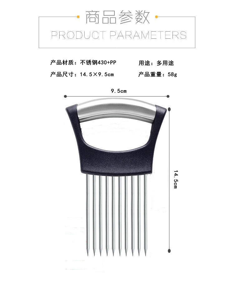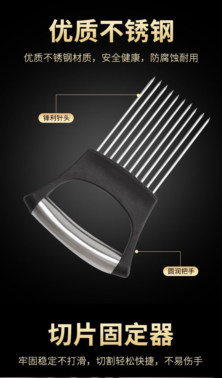 新商品のステンレス玉ねぎ針家庭用果物と野菜の固定スライサーは、シース付きの松肉針玉ねぎフォークキッチンツールです。