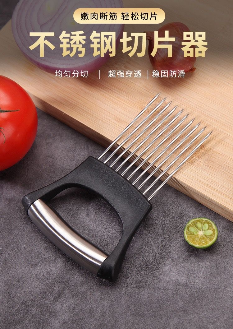 ステンレスの玉ねぎの針の切り器の松肉の針の柔らかい肉の器は野菜の台所の小さい道具の玉ねぎを切ってスライスの固定器を挿します。