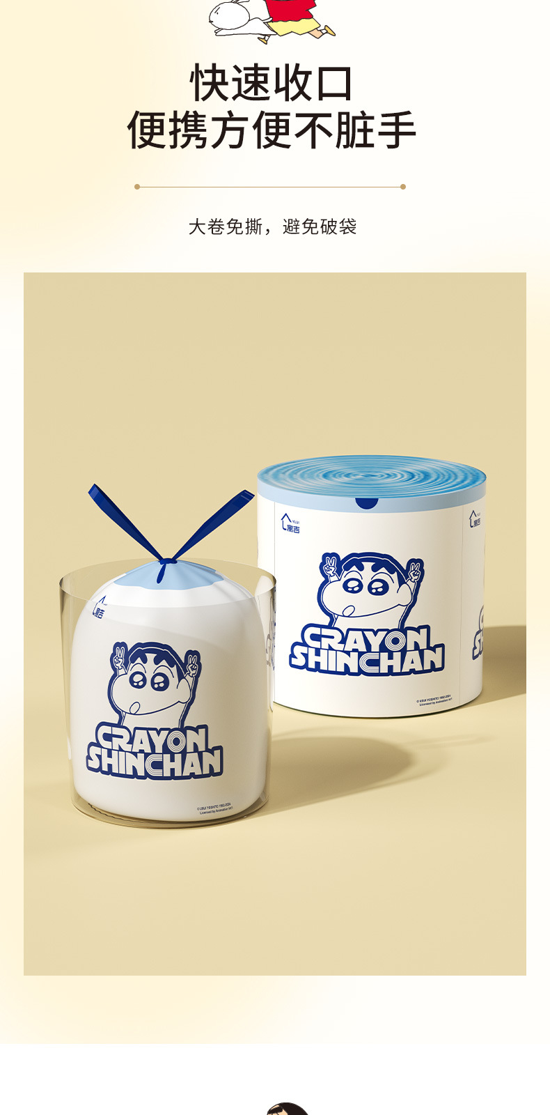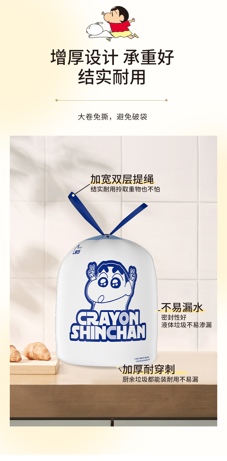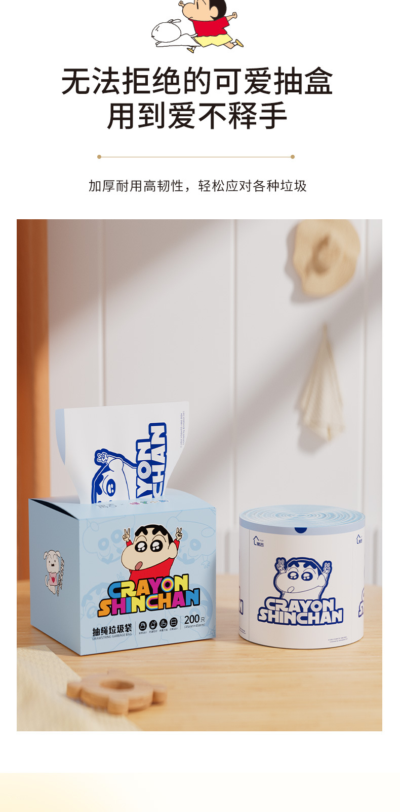 吊り下げ式破れないゴミ袋 クレヨンしんちゃん 家庭用 厚手 シルキー引き出し式 生分解性