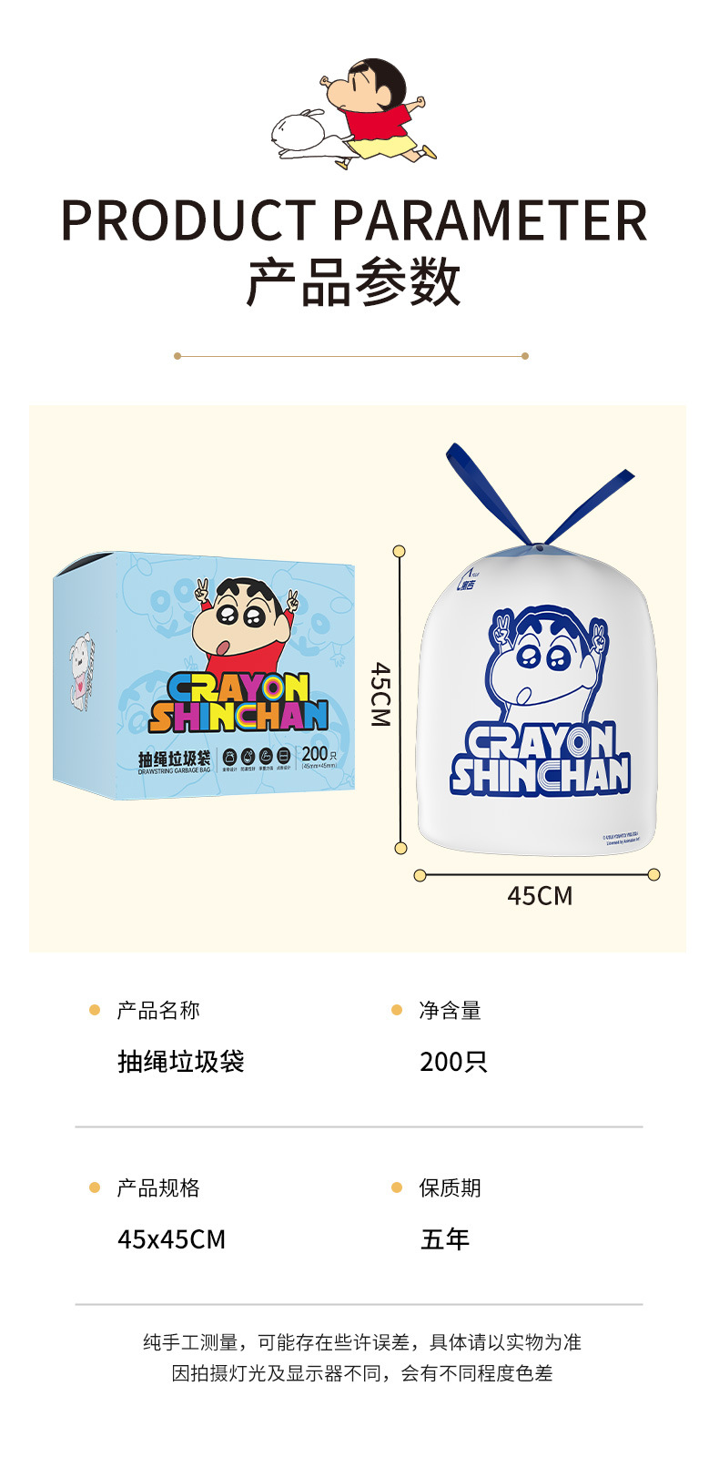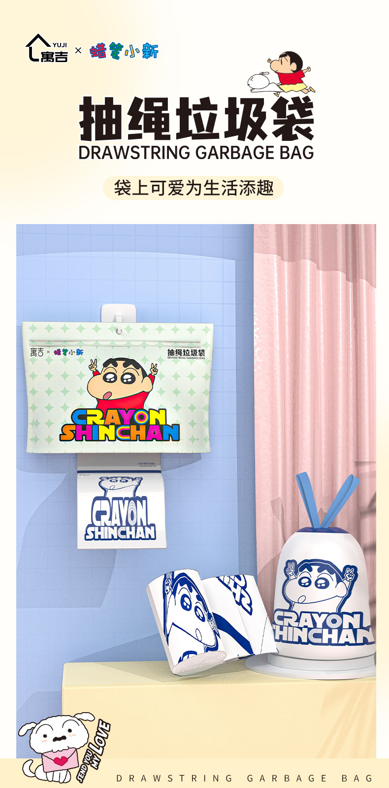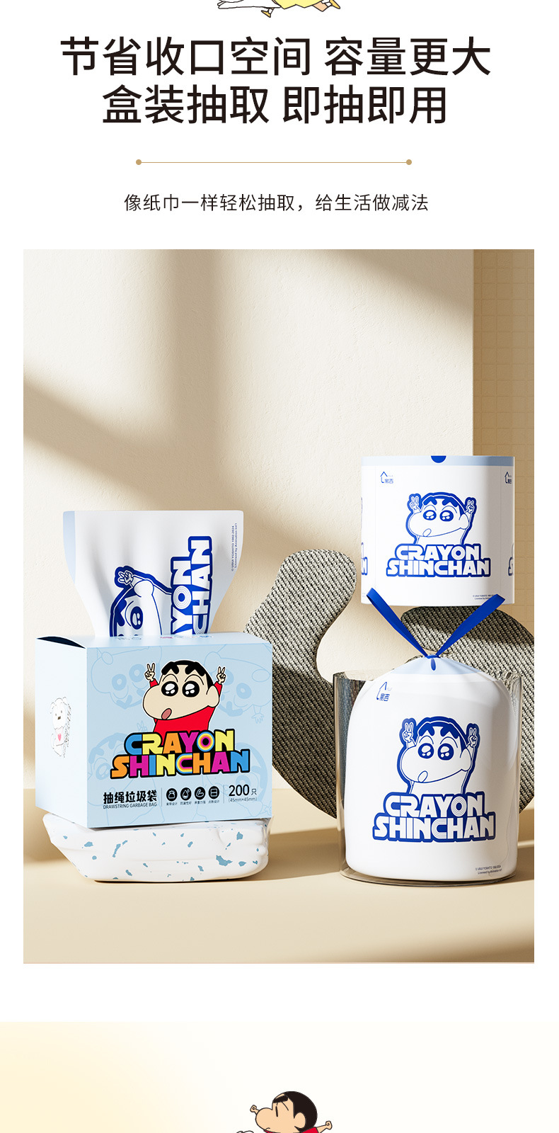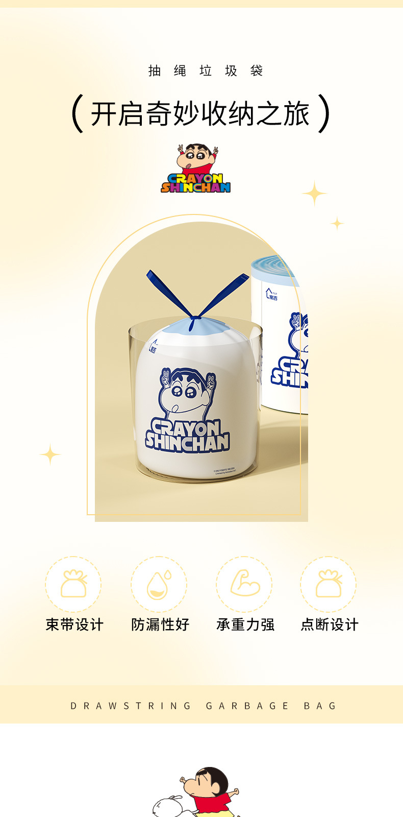 吊り下げ式破れないゴミ袋 クレヨンしんちゃん 家庭用 厚手 シルキー引き出し式 生分解性