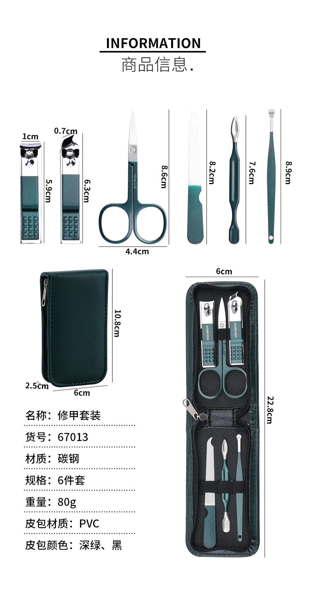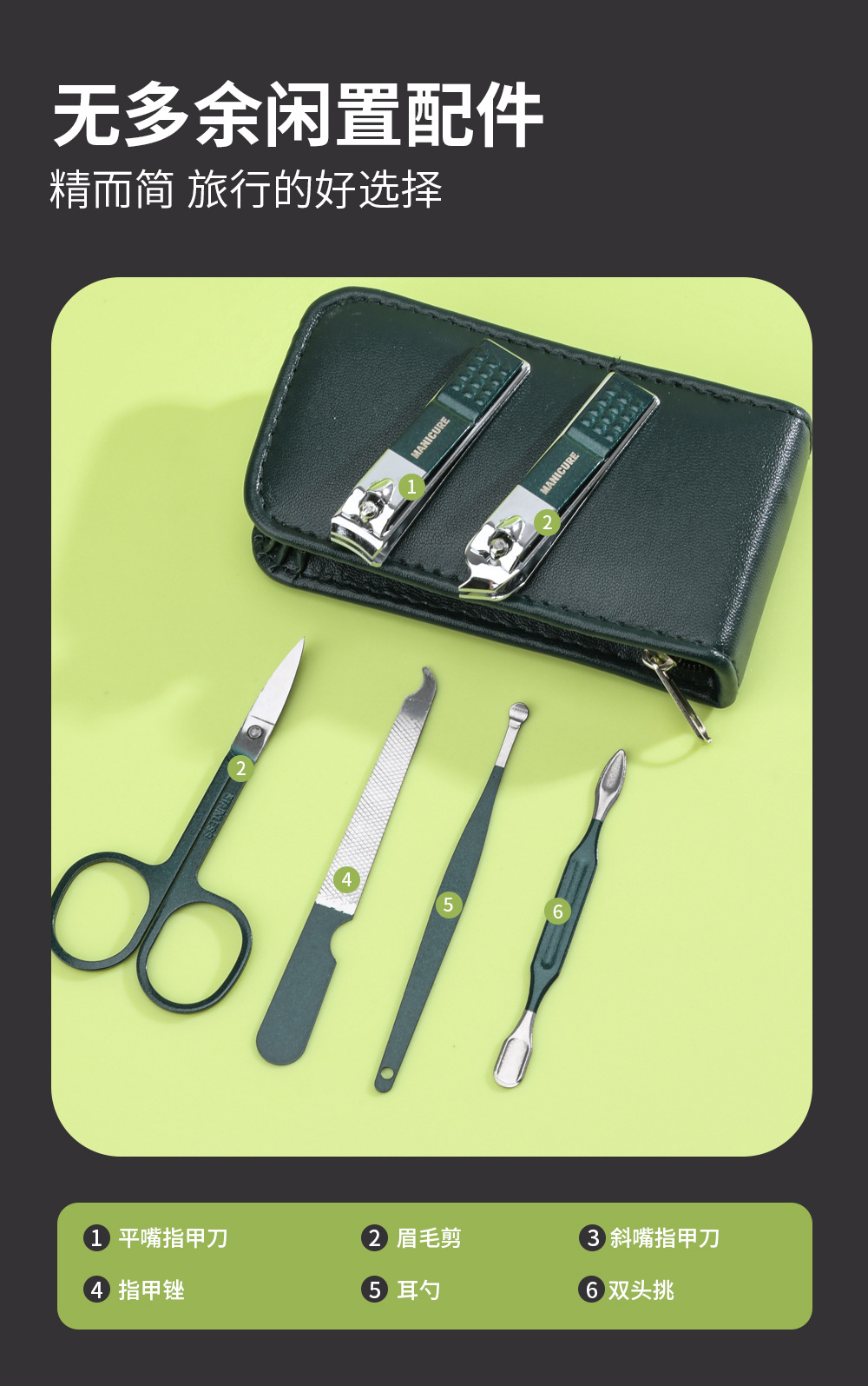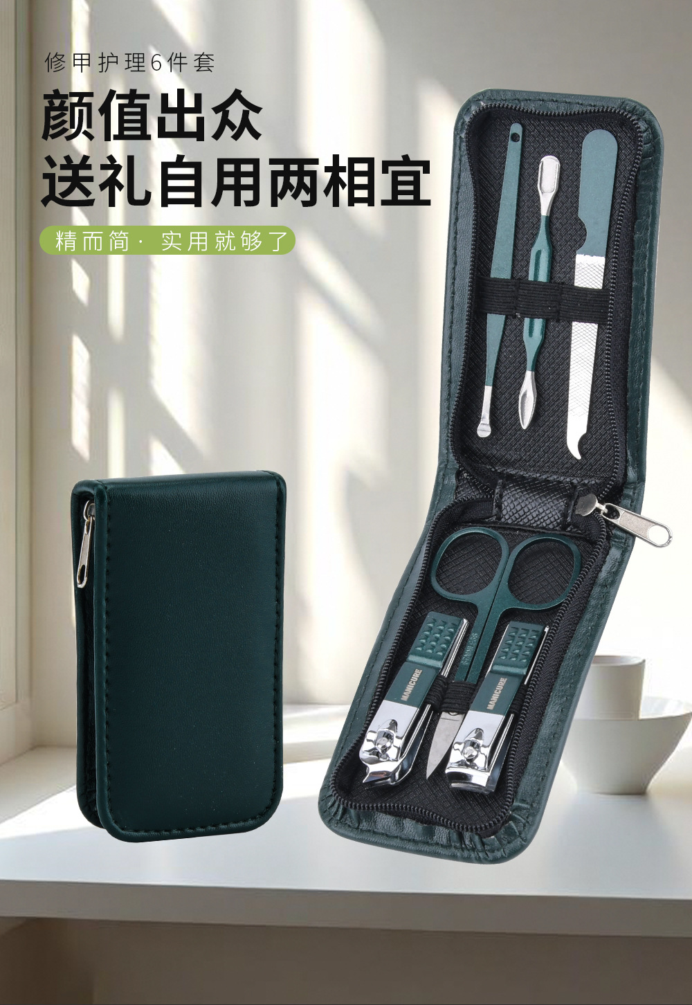 墨緑チャックバッグ9点セット爪切りセット飛散防止爪切り携帯美容工具ギフトセット