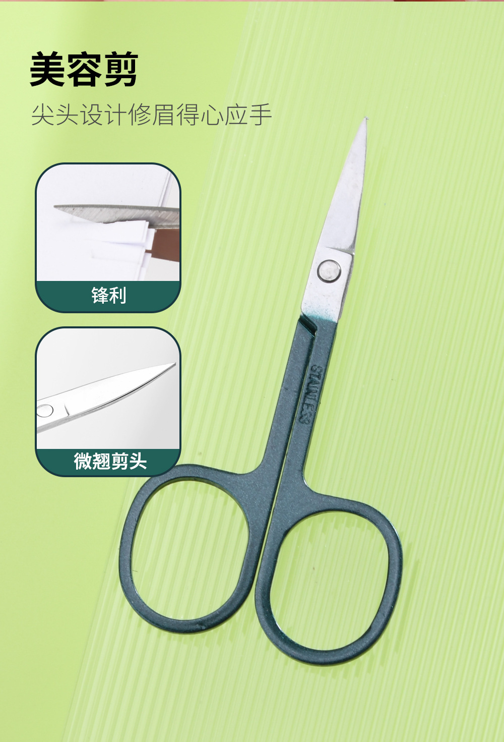 卸売シェルステンレスハンドル尖頭眉毛トリマー、丸頭鼻毛トリマー、表皮角質倒毛・死皮トリマー