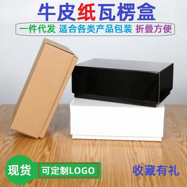 靴箱箱現物黒白色クラフト紙折り畳み蓋段ボール箱電気商サイズ子供靴箱卸売り