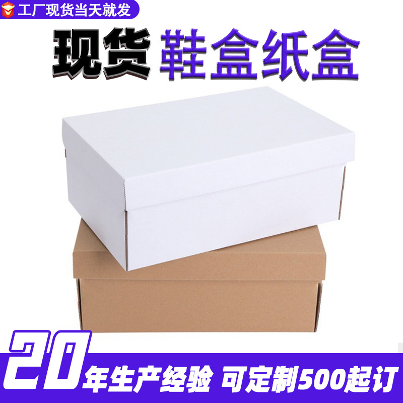 现货鞋盒纸盒牛皮纸盒白色折叠式瓦楞纸盒男女鞋快递鞋子包装盒