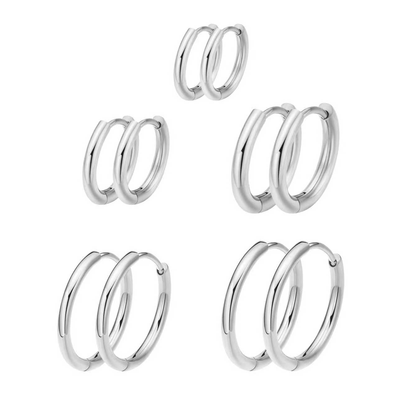 美飾爾ステンレス製無地リングイヤリング、光沢のあるワイヤーイヤリング、男女兼用、大きめイヤリング、個性的でシンプルな無地イヤリング