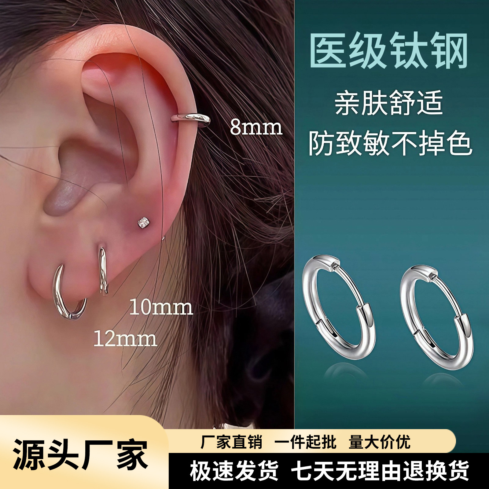 医用钛钢耳圈素圈耳环女轻奢高级感钛合金耳钉耳骨钉养耳洞耳饰男