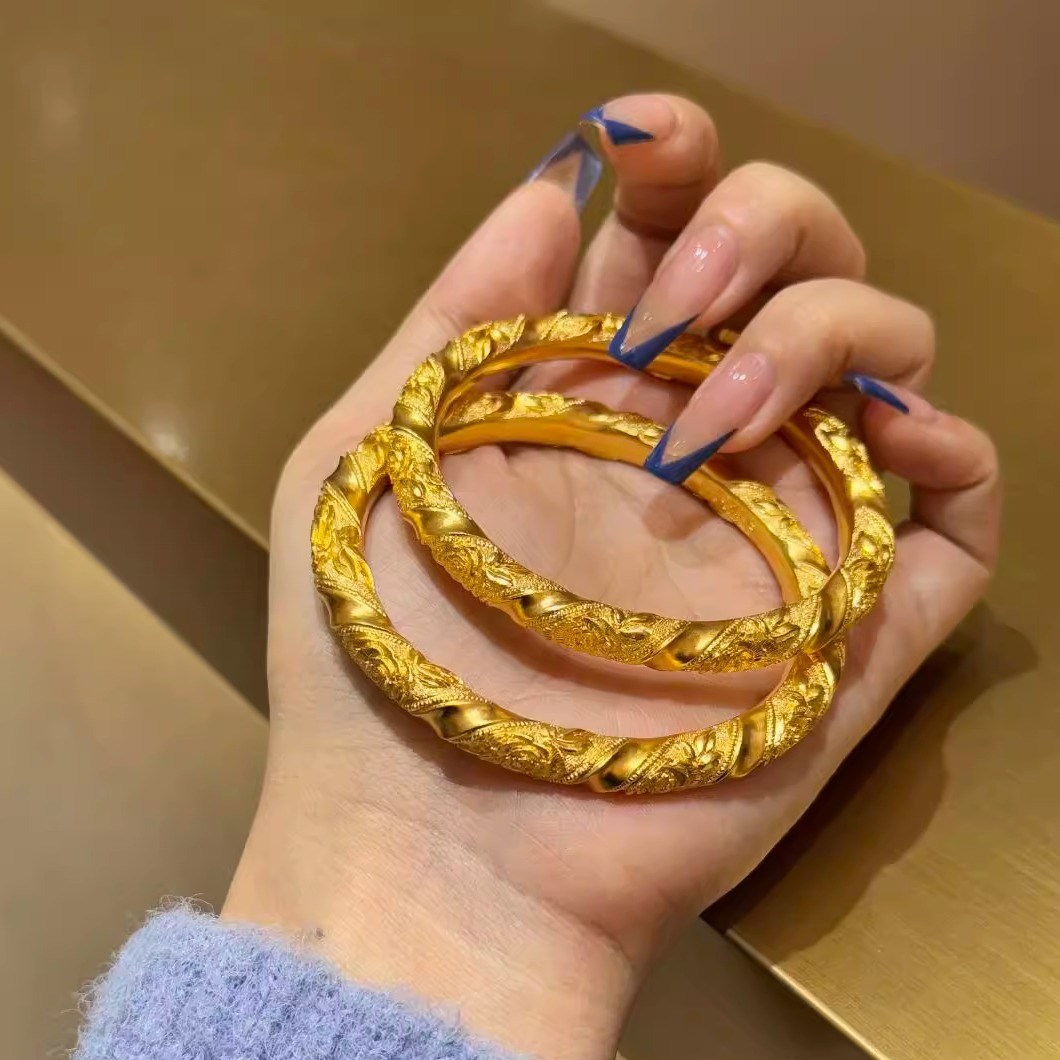 ゴールドストアと同じスタイルの彫刻ローズブレスレット、女性用ゴールドピグメントサークルブレスレット、女性用古代シンプルな宮殿スタイルのソリッドブレスレット