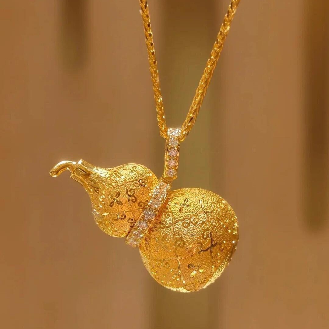 古法设计金色拉丝福禄葫芦吊坠项链新中式碎砖轻奢高级感精工项链