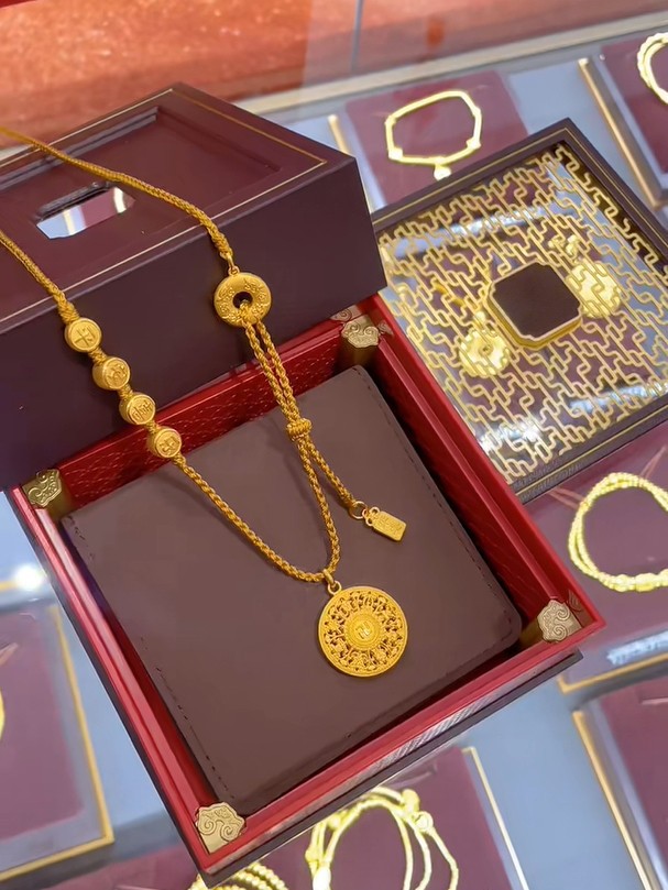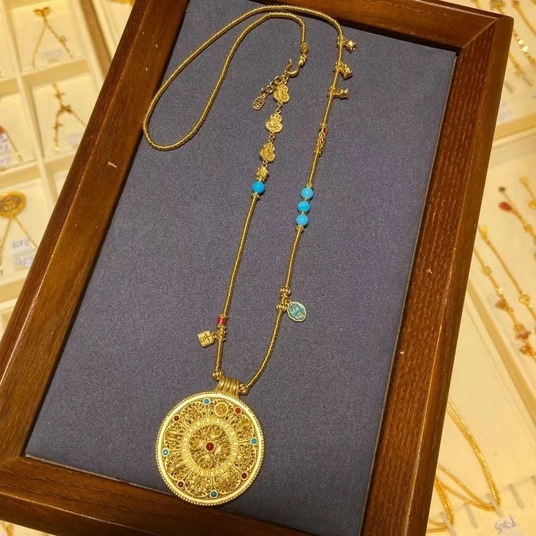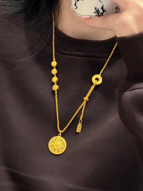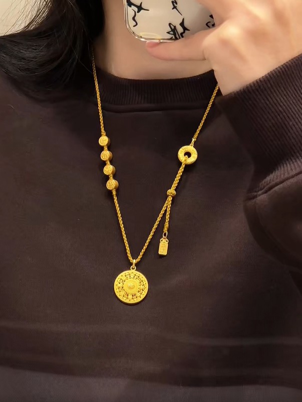 韋雪同項黄金色平安喜楽花糸八宝コンパスネックレス復古平安ボタン編みひもセーターチェーン