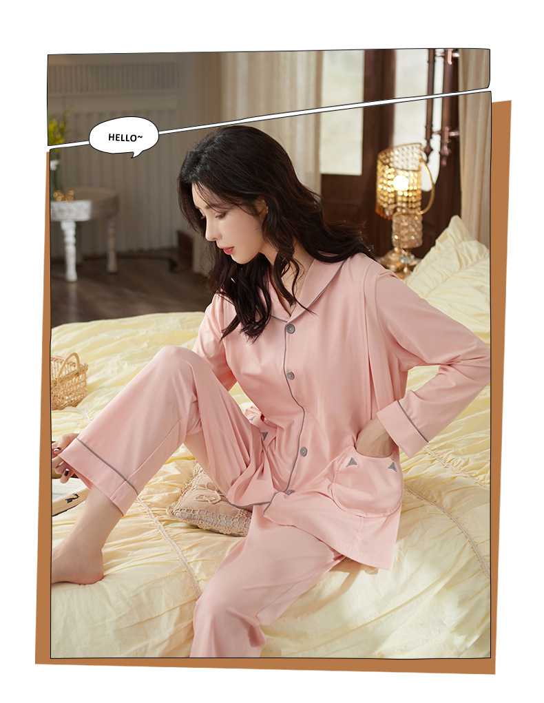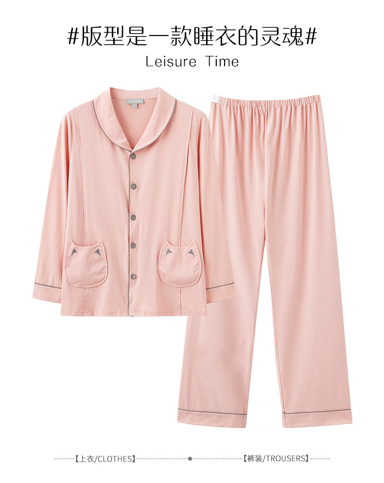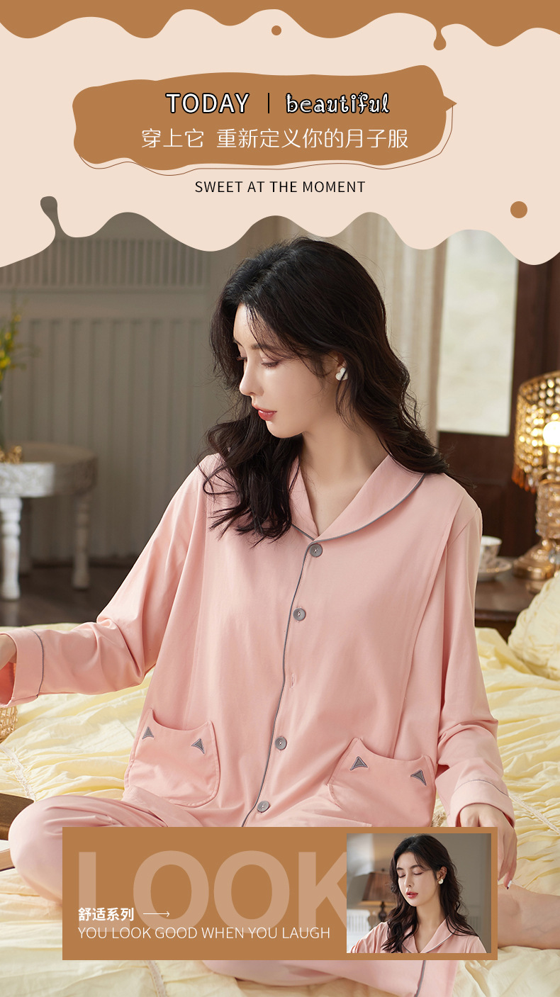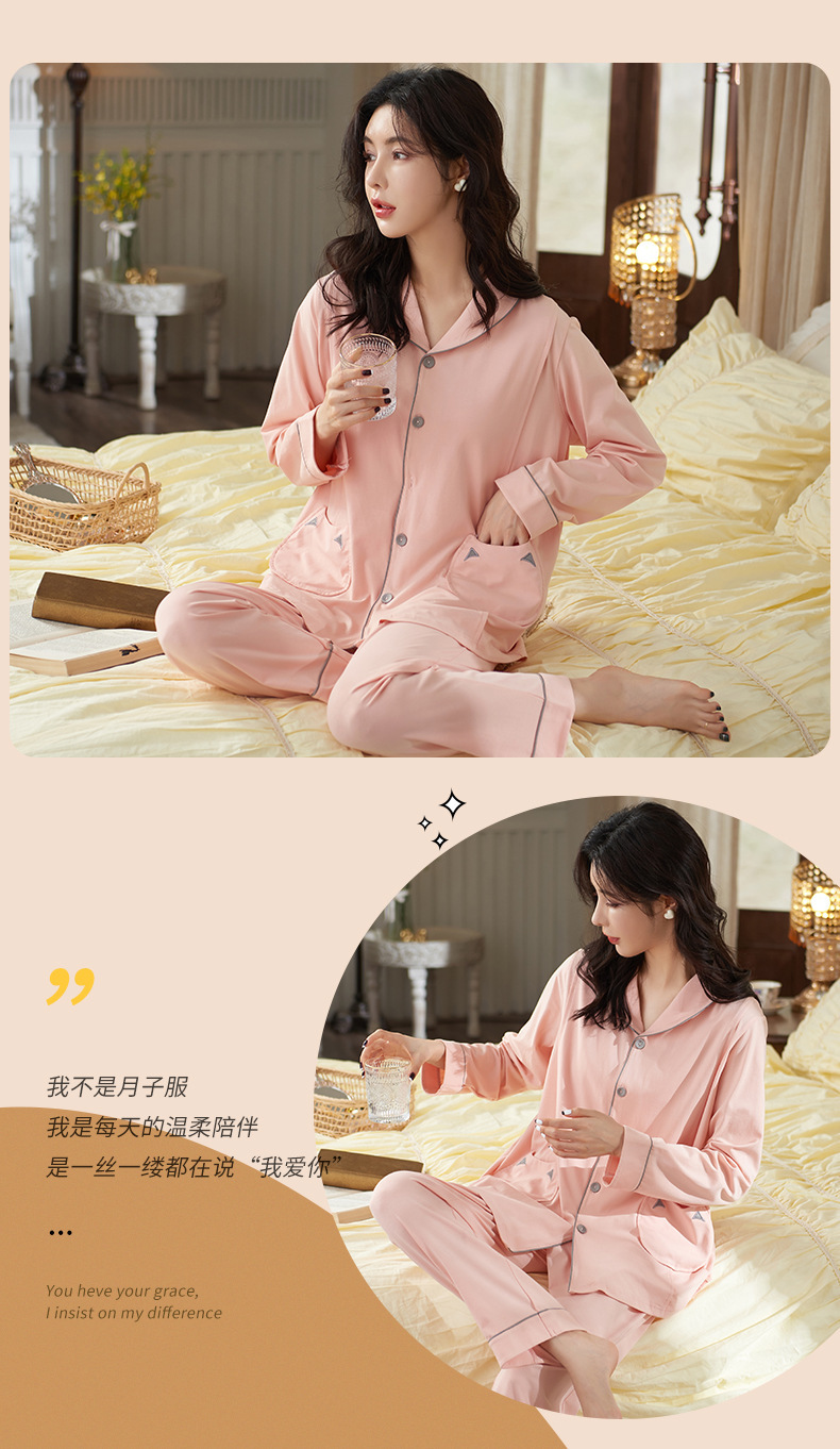 跨境月子服睡衣女春秋长袖两件套装仿棉孕妇翻领开衫家居服可外穿