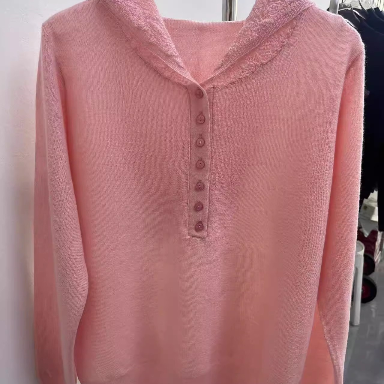 欧品の薄いレースの帽子のウールのニットの女性の春の新型のゆったりした洋気は年齢を減らして長袖の上着を打ちます。