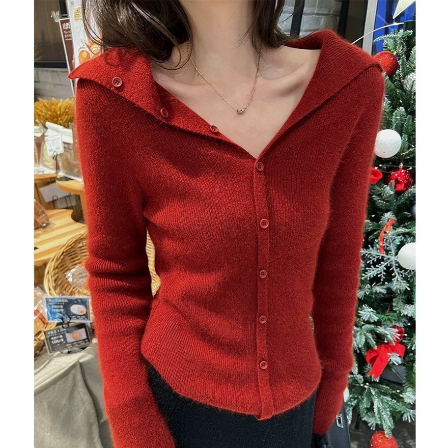 冬季跨年氛围感微妙版型温柔感翻领19%羊毛26%浣熊毛毛衣百搭显瘦