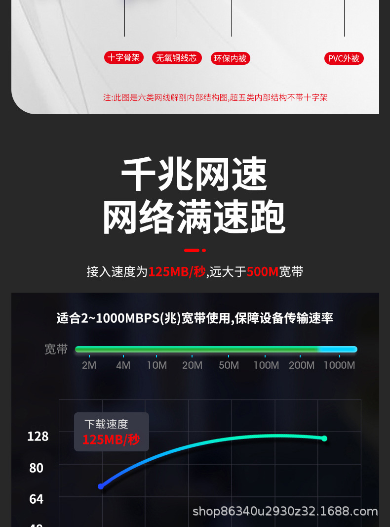 唯格超六类千兆网线 cat6非屏蔽成品电脑路由器对绞过测网络跳线