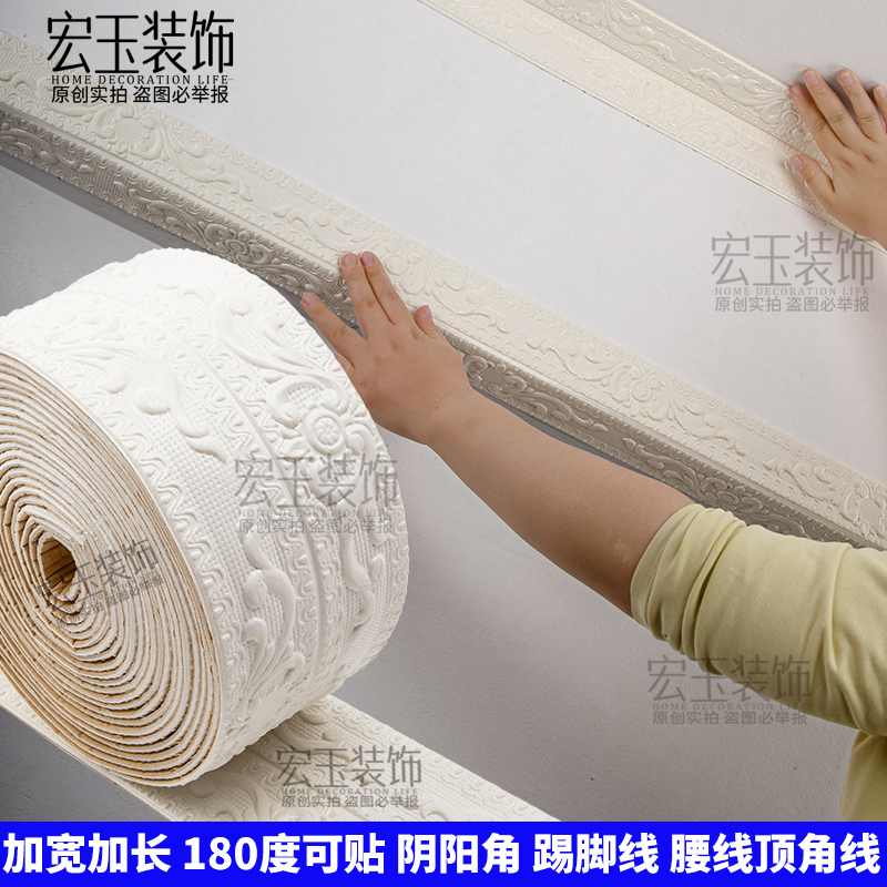 3d立体の壁は自分で腰の線の屋根の角線を貼ります。