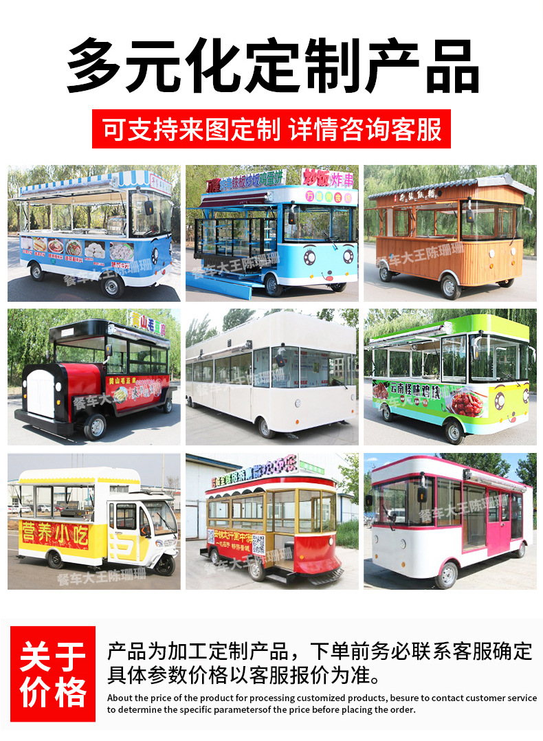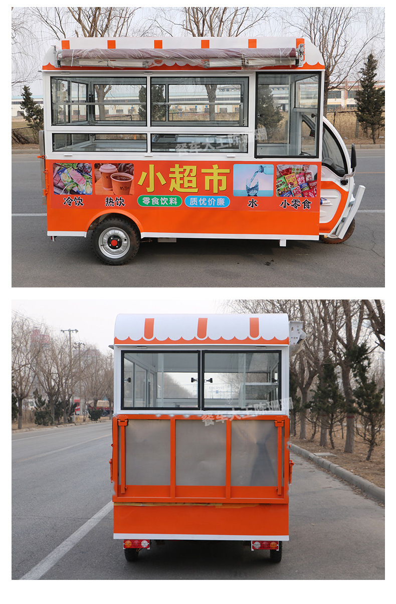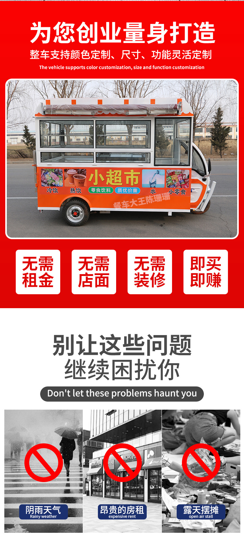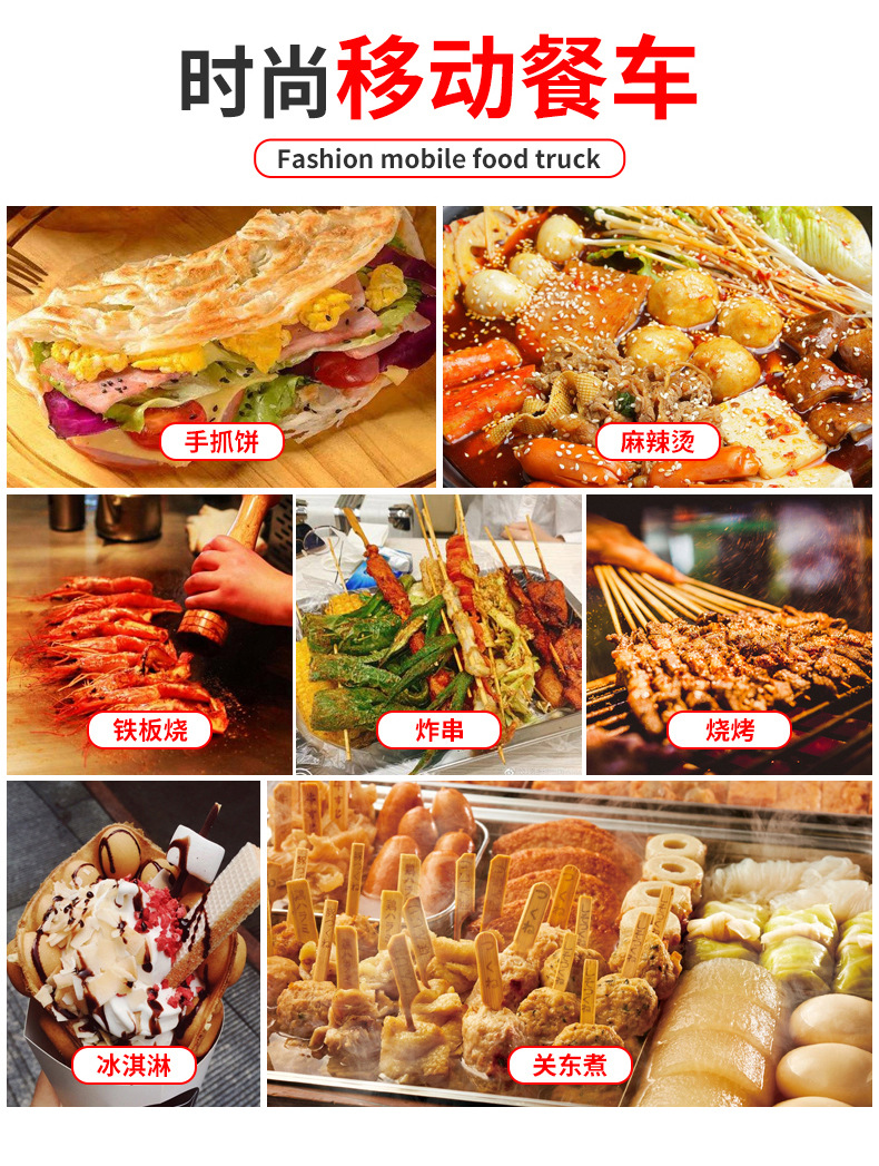 四輪電動食堂車朝市移動ファストフード屋台車米せんべい手掴み餅肉饅頭流動グルメ車