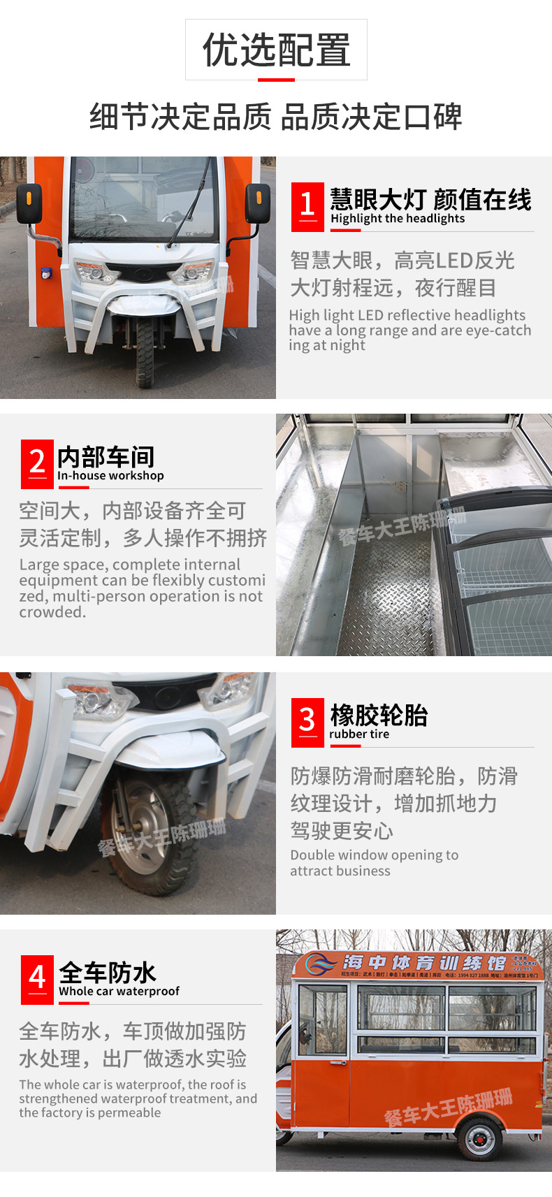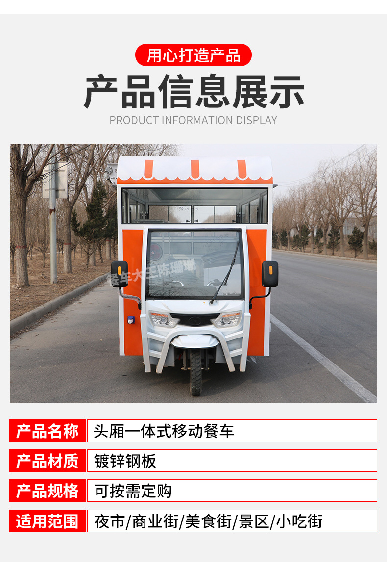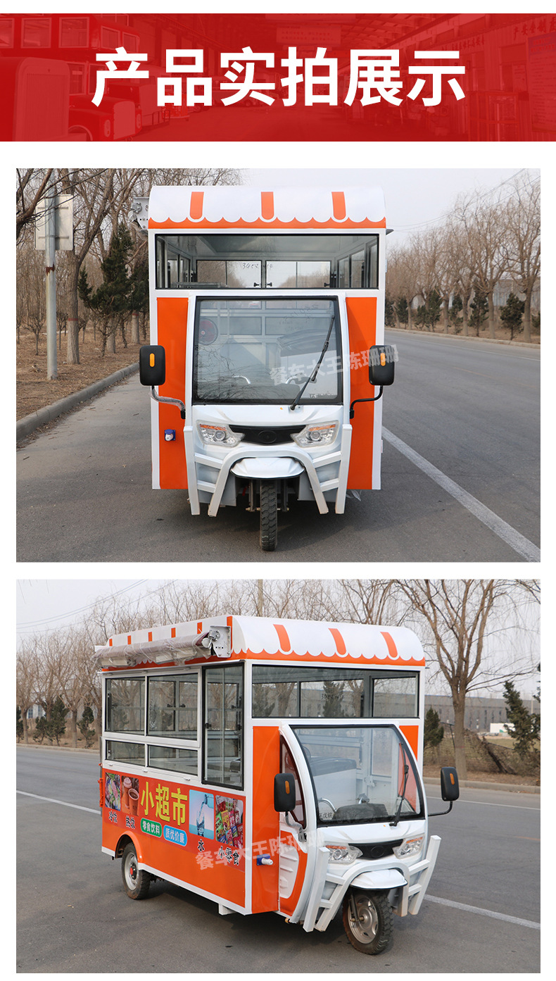 三輪食堂車閉鎖式流動調理販売車電動移動軽食車観光地区ネット赤販売車