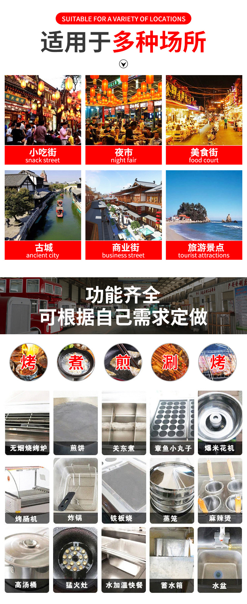 夜市商用露店多機能食堂車電気朝食四輪ファストフード移動三輪グルメ露店軽食車