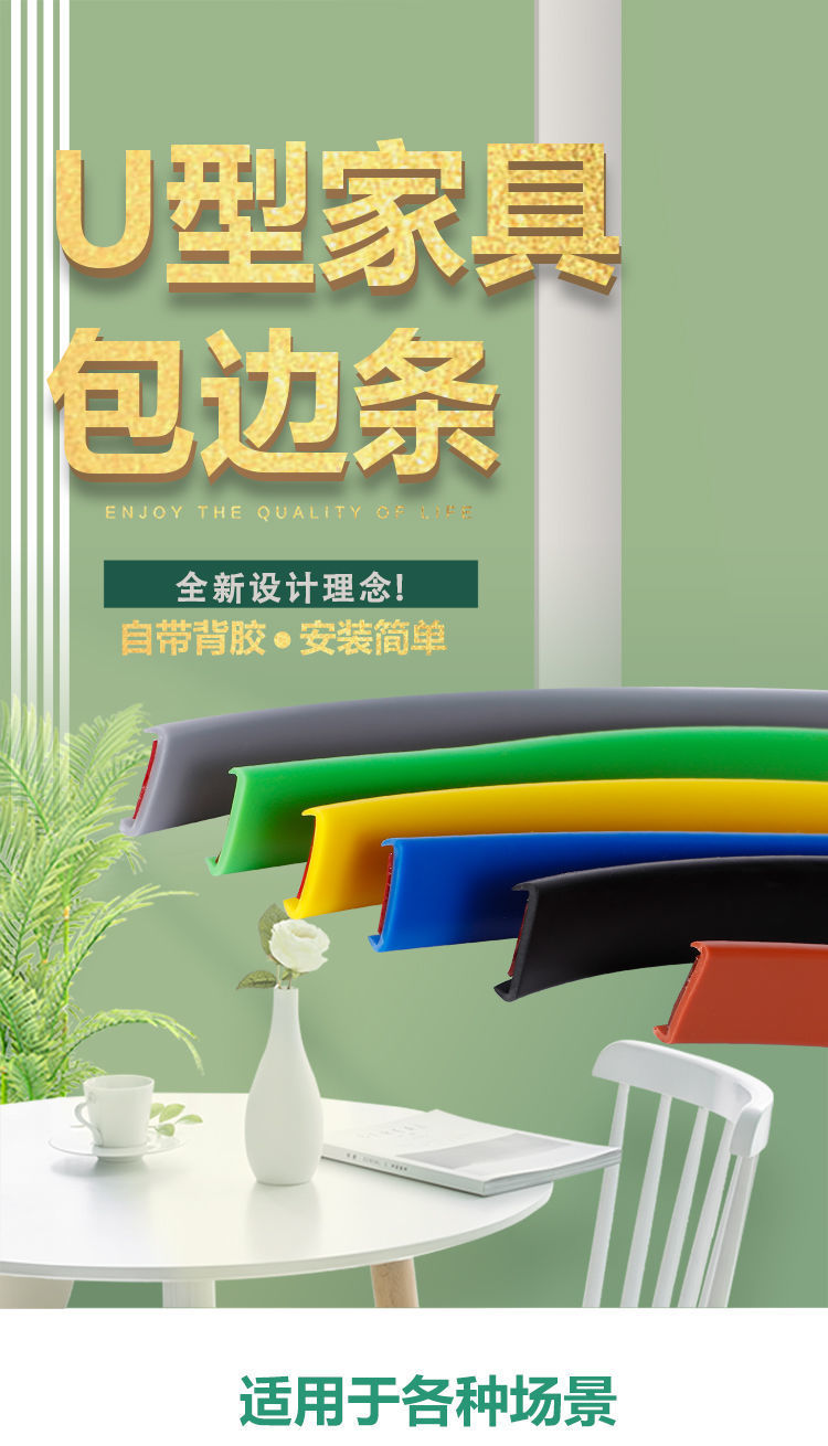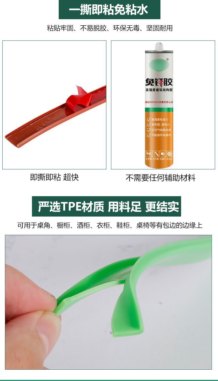 TPE製ソフトエッジストリップ、粘着式キャビネットエッジ、U字型木板エッジストリップ、家具、ワードローブ、ドア、テーブル、椅子用