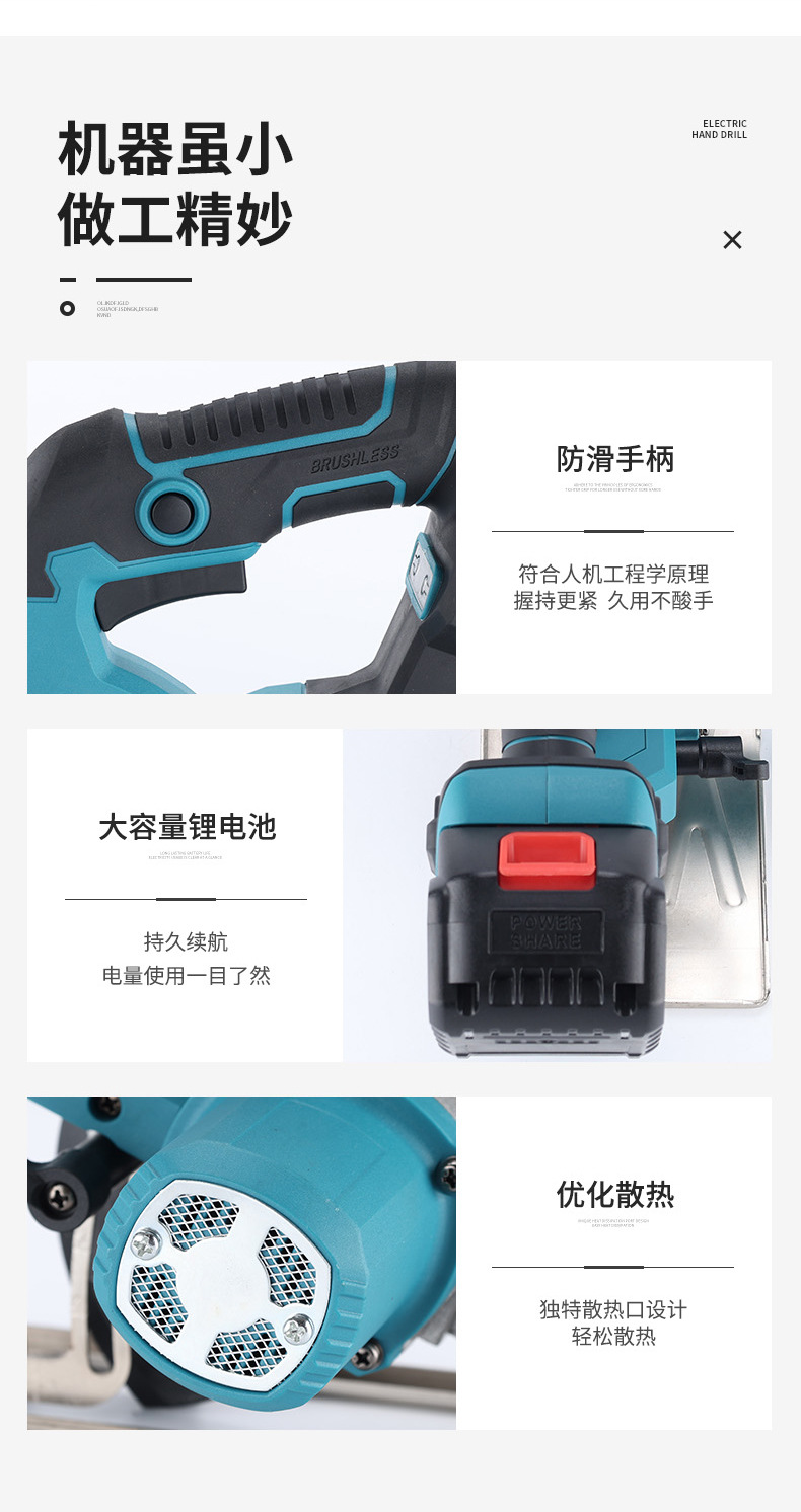 6寸高功率工业级纯铜无刷电圆锯锂电充电木工手提锯切割机圆盘锯