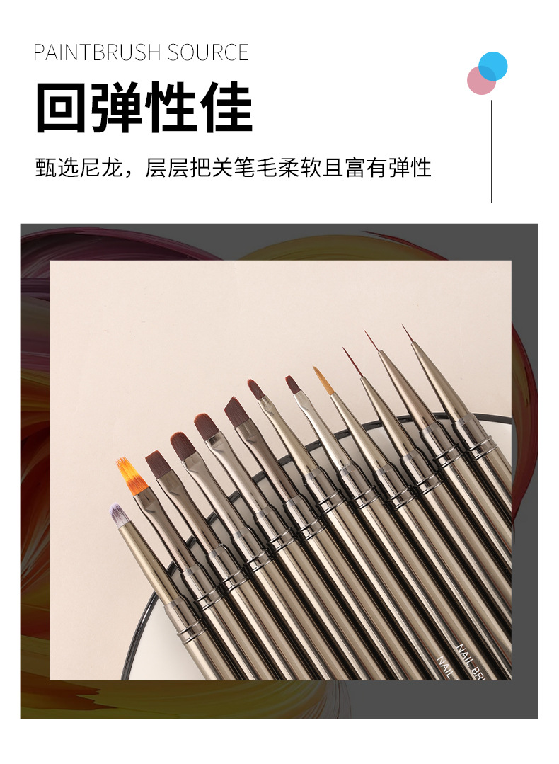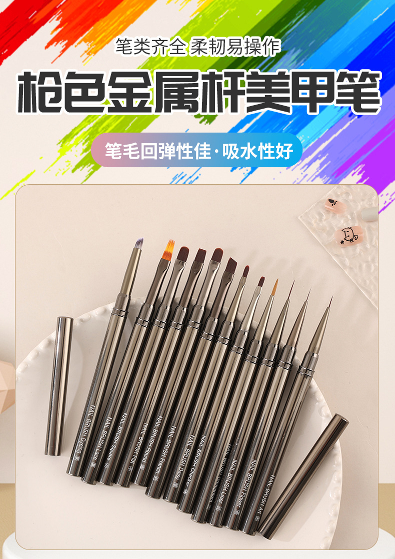国境を越えた新しい銃色金属棒ネイルブラシセット彩色画線引き画花光治療グラデーションネイルペン