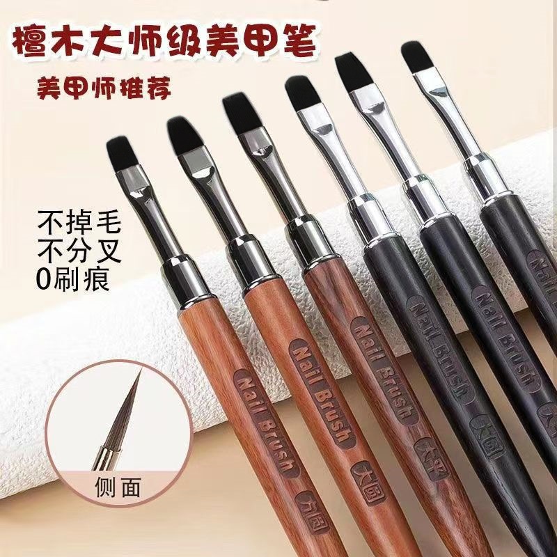 檀木美甲笔大方圆光疗笔美甲建构刷胶大圆头大平头光疗笔带笔盖