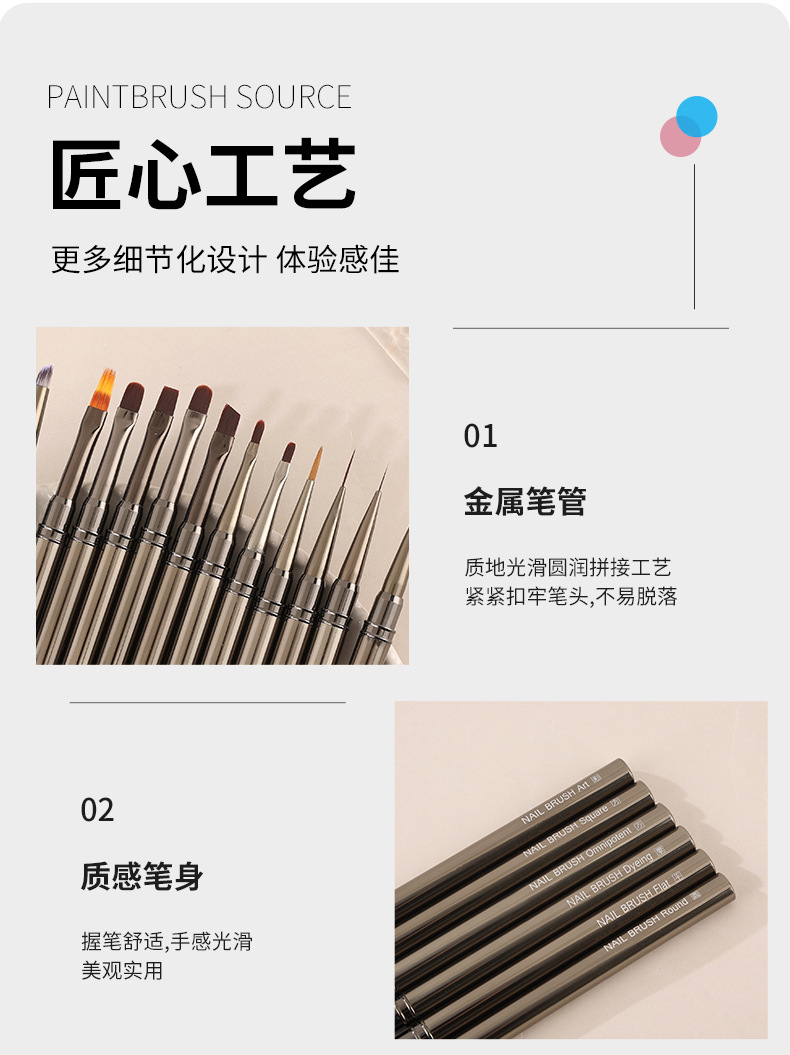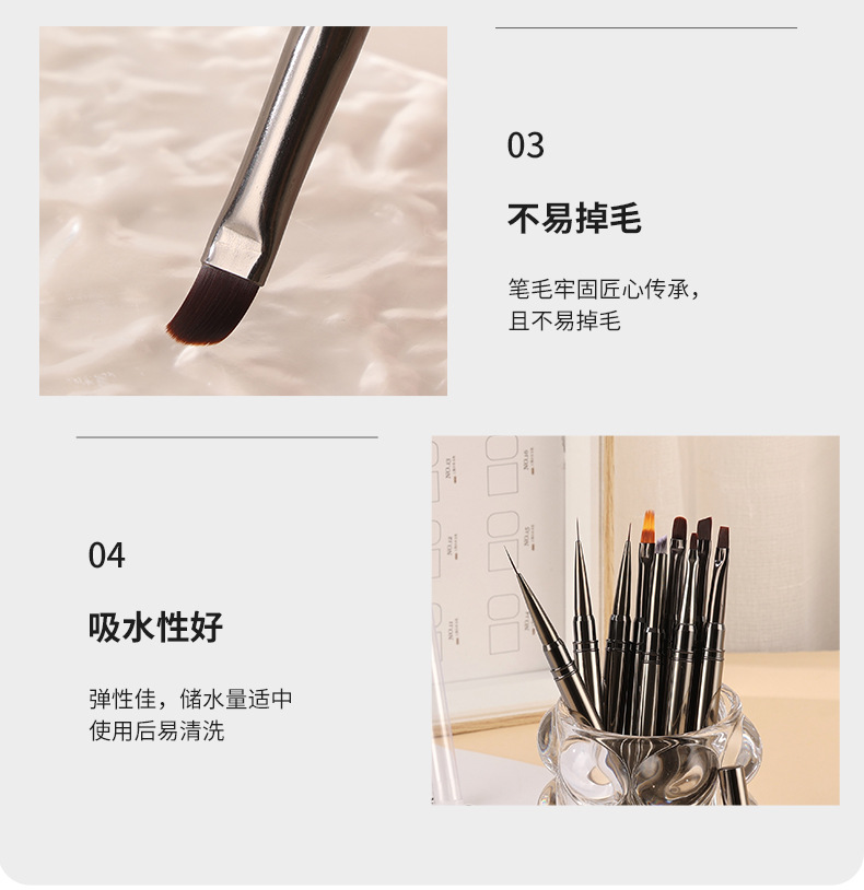 新しいマニキュアブラシセット、塗装糸三角ペン、正方形と円形のスイープユニバーサル花びら光線療法ペン工場卸売