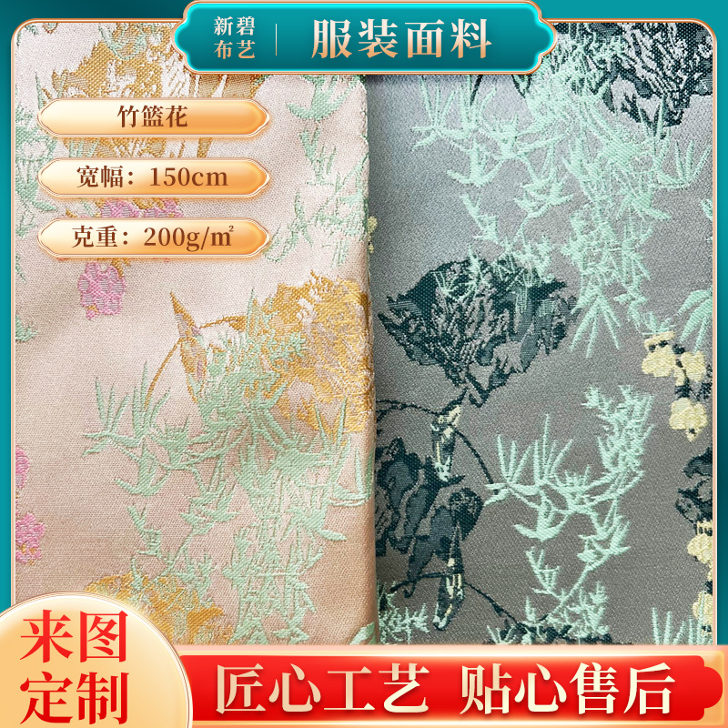 スポット新国民風竹かご花国民トレンドジャカード生地模造宋唐漢服ベスト馬面スカート漢服生地