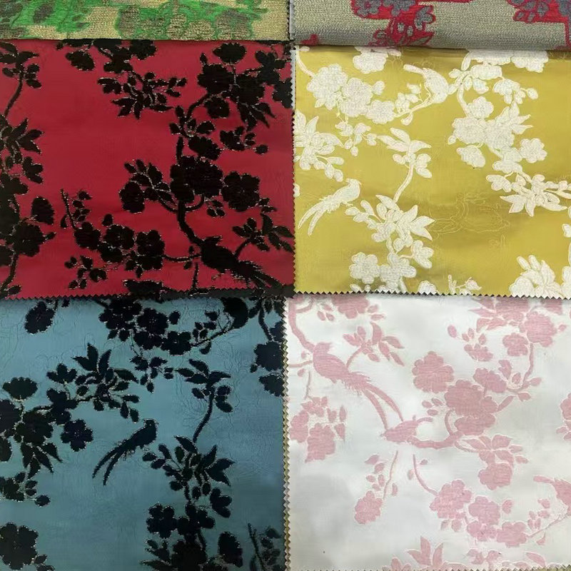 国風漳毛サテン生地鳥語花の香りが清新で優雅なジャカード生地の柔らかい快適なワンピースのチャイナドレス生地