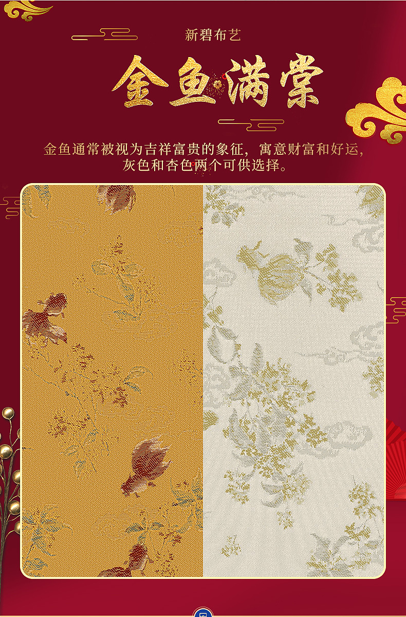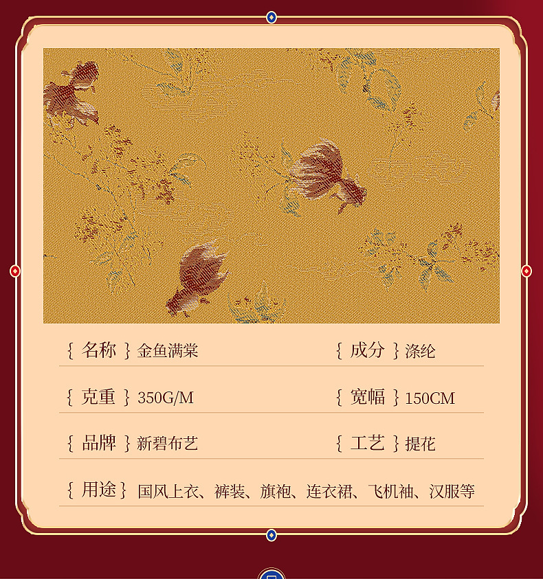 【如鱼得水】春秋国风仿宋锦金鱼纹理汉服旗袍色织面料装饰提花布