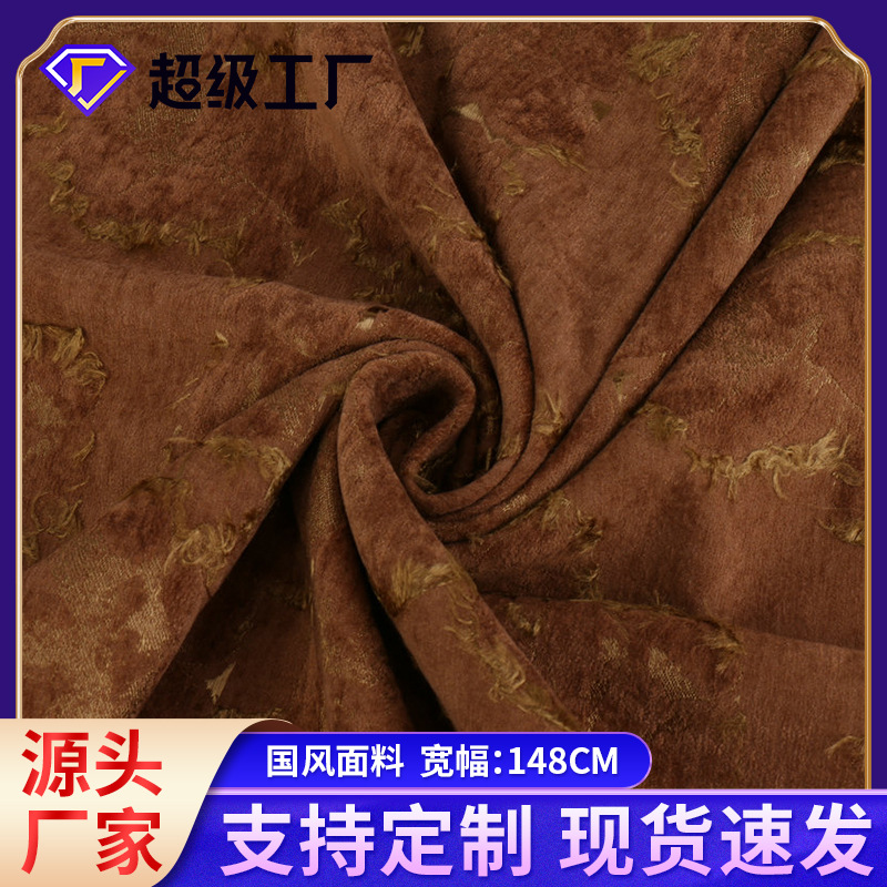 新款宋锦布料人丝剪花高支高密雪尼尔秋冬加厚复古老钱风提花面料