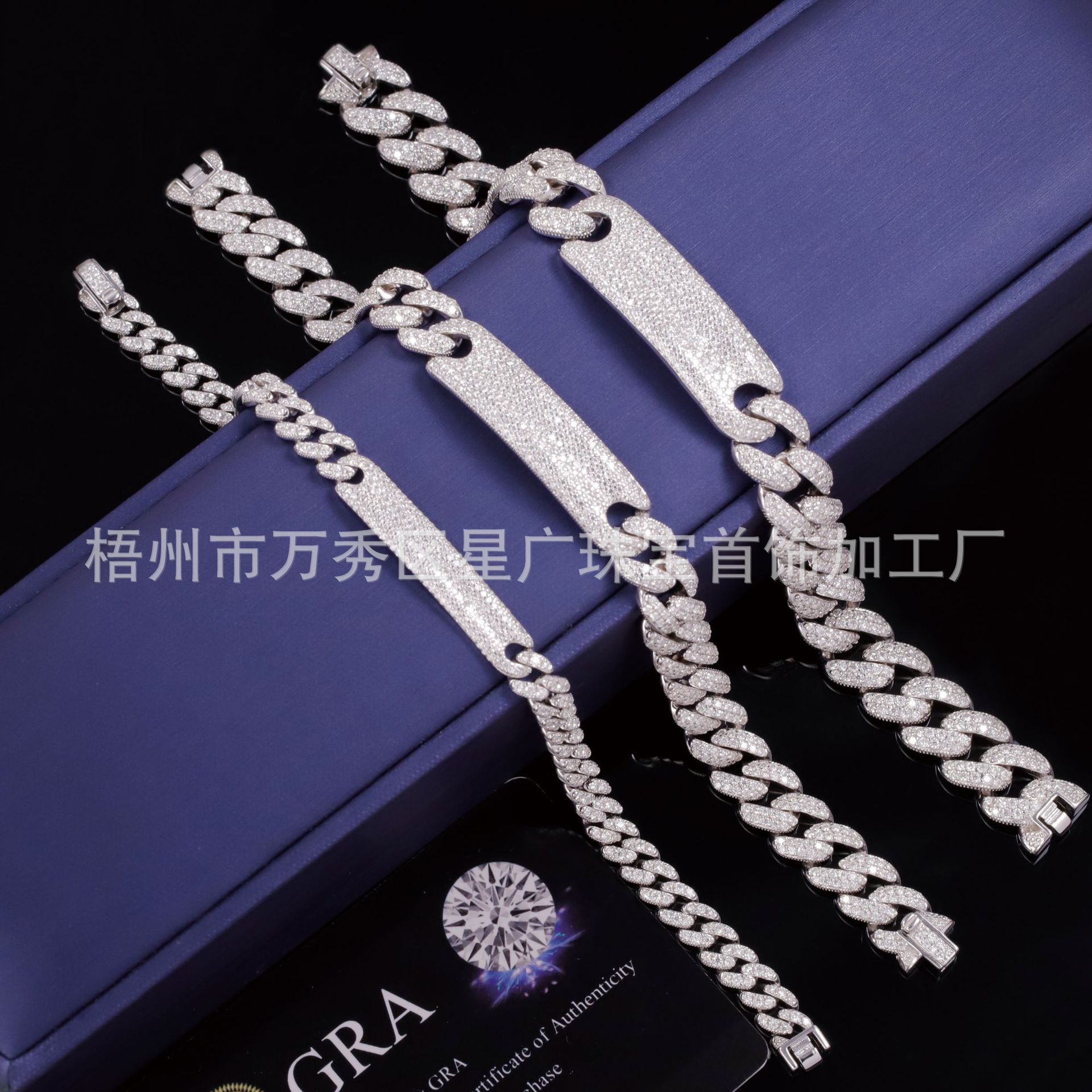 ヨーロッパとアメリカのクロスボーダー豚鼻キューバブレスレット、モアッサナイトで満たされたヒップホップアクセサリー