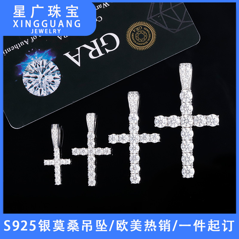 欧米風クロスボーダーS925純銀2mm 3mm 4mm 5mmモアサナイトクロスペンダントヒップホップジュエリー