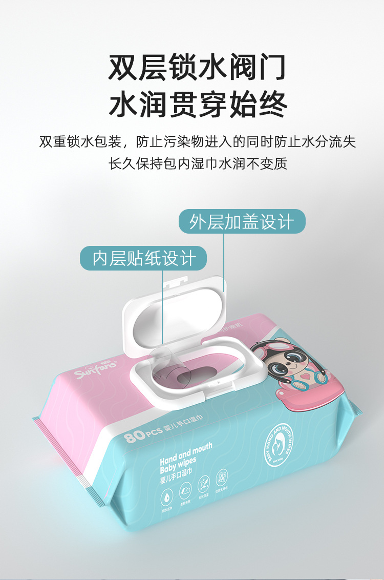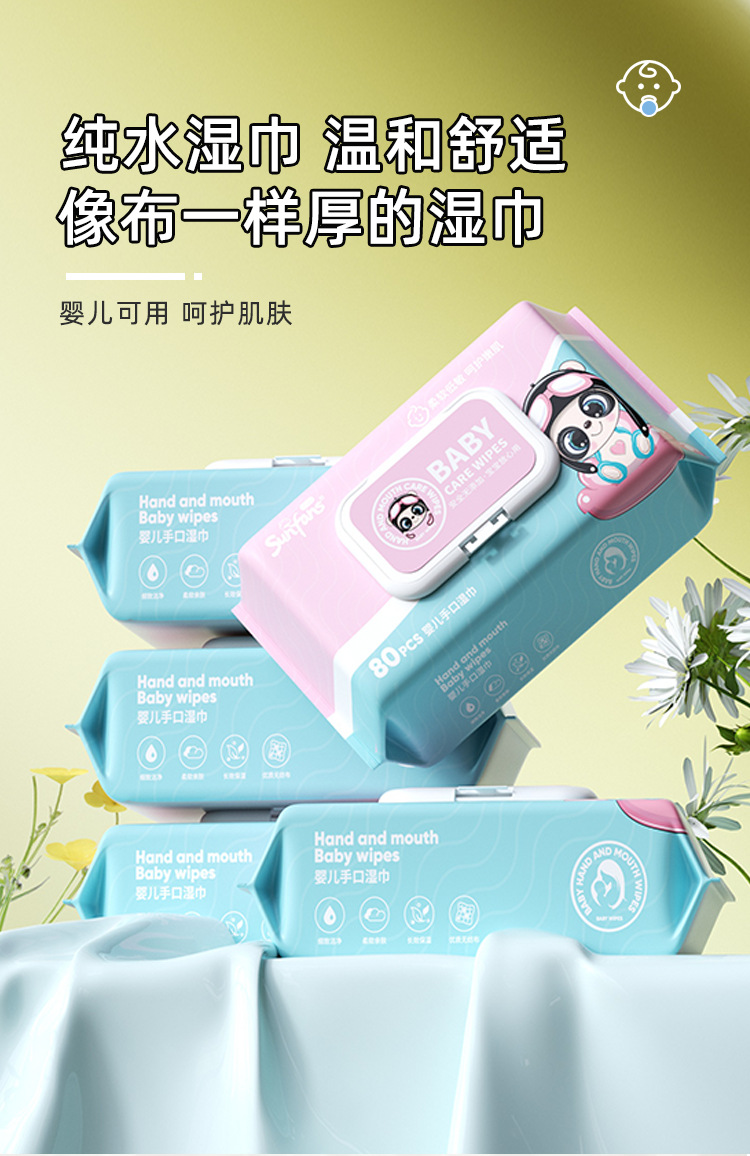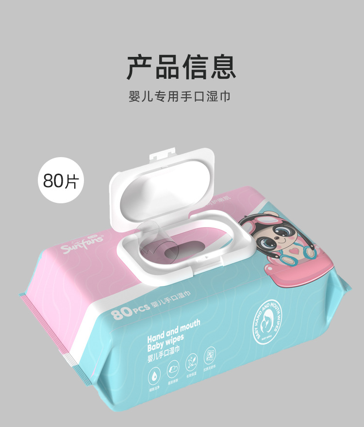 赤ちゃんのウェットティッシュ80は大きなバッグを吸って、赤ちゃんの手の口をきれいにします。