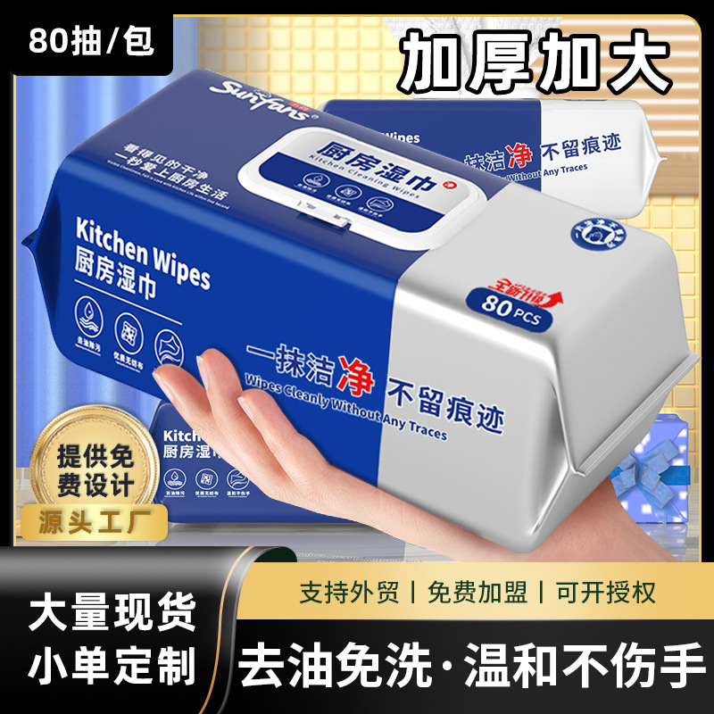 キッチン油汚れ除去用ウェットティッシュ、特大・極厚、家庭用80枚入り大容量ウェットティッシュ、キッチン掃除用ウェットティッシュ