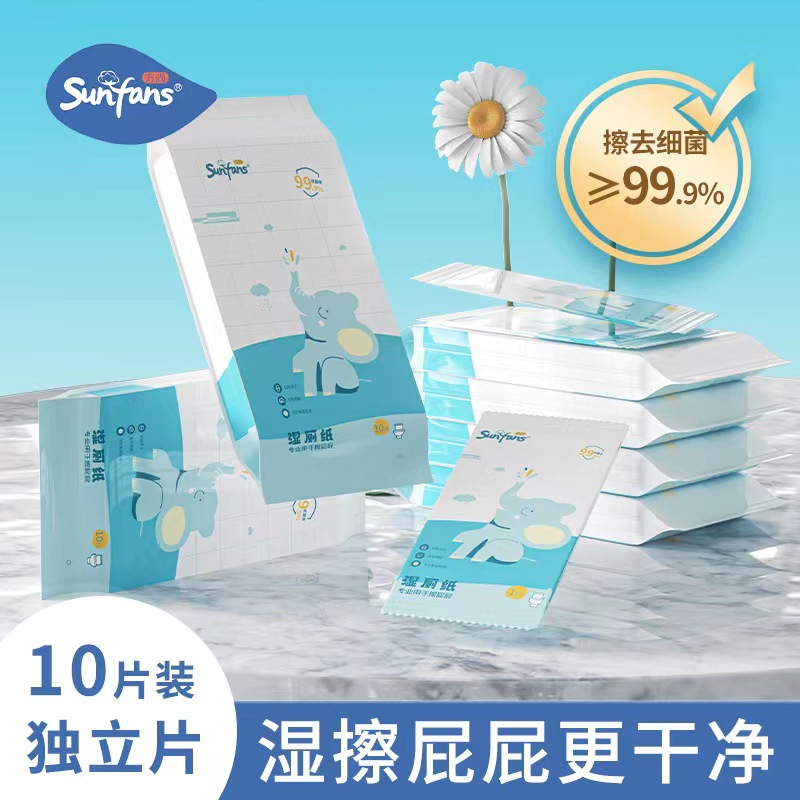 ウェットティッシュ小パック、純水10枚入り、便利で持ち運びが簡単、子供の手と口の洗浄用、使い捨ての厚手のベビーウェットティッシュ