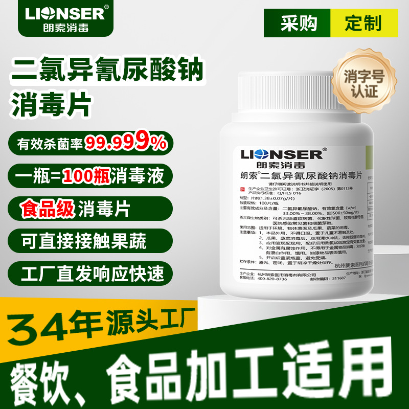 含氯消毒片餐饮酒店食品加工果蔬杀菌消毒二氯异氰尿酸钠消毒片