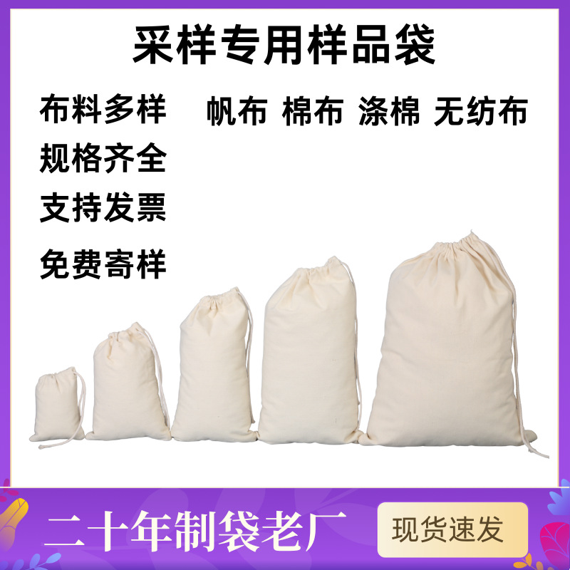 加厚棉布袋矿石土壤取样袋地质样品袋帆布抽绳束口收纳袋大米布袋