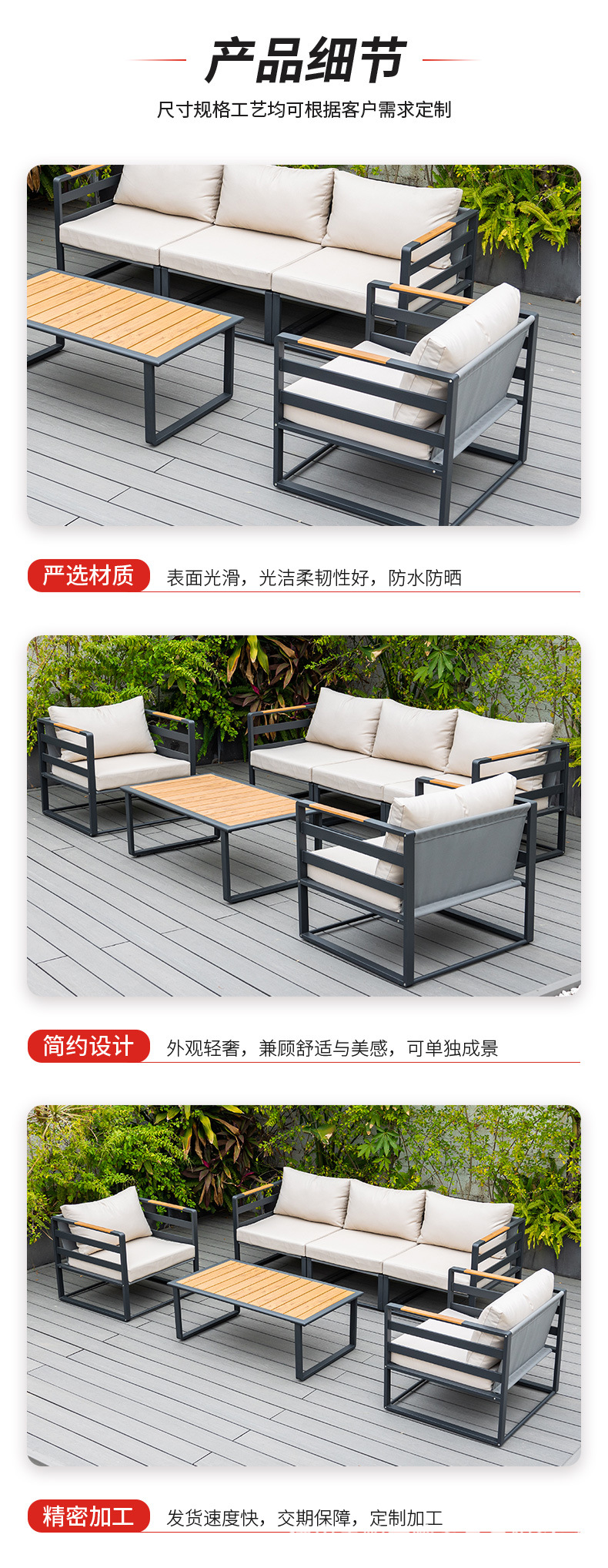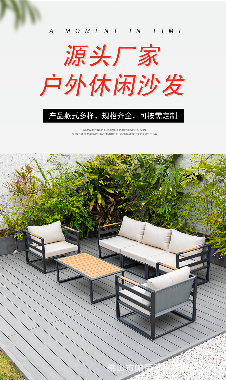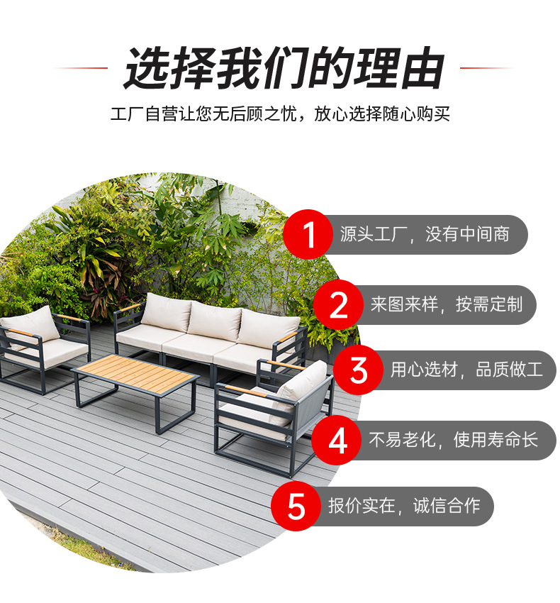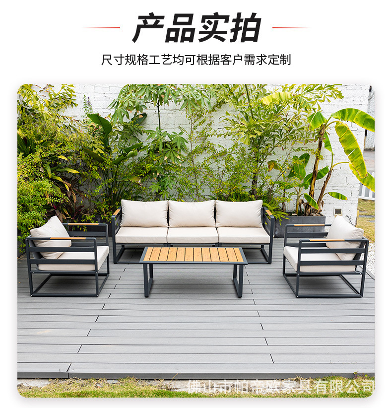 屋外ソファー庭園アルミニウム合金防雨日焼け止め別荘ホテル露天バルコニープラスチック木ソファー椅子組み合わせ家具