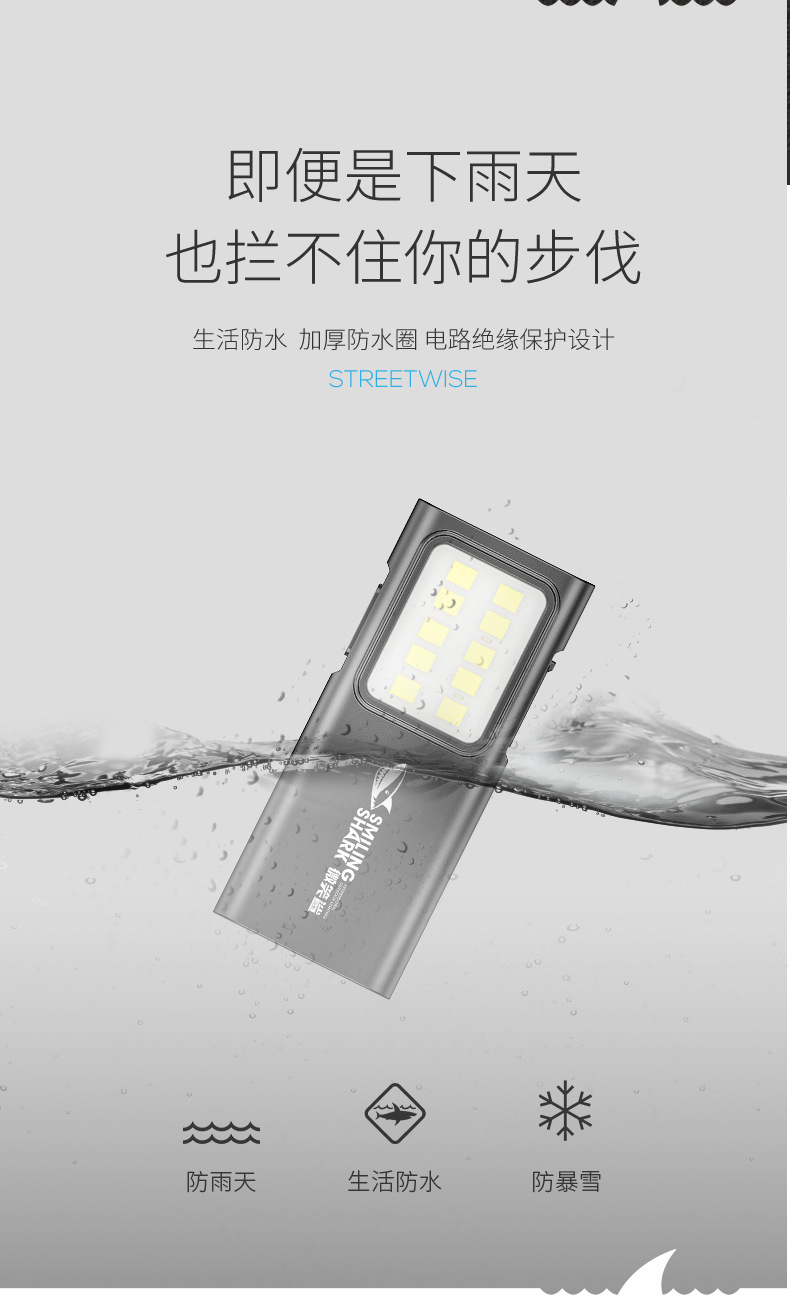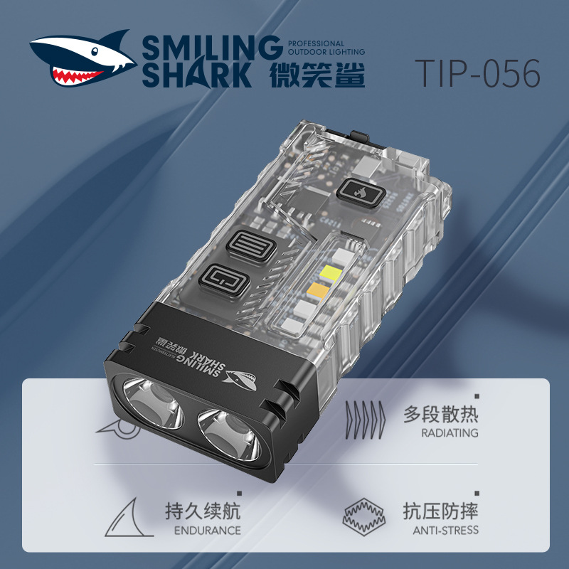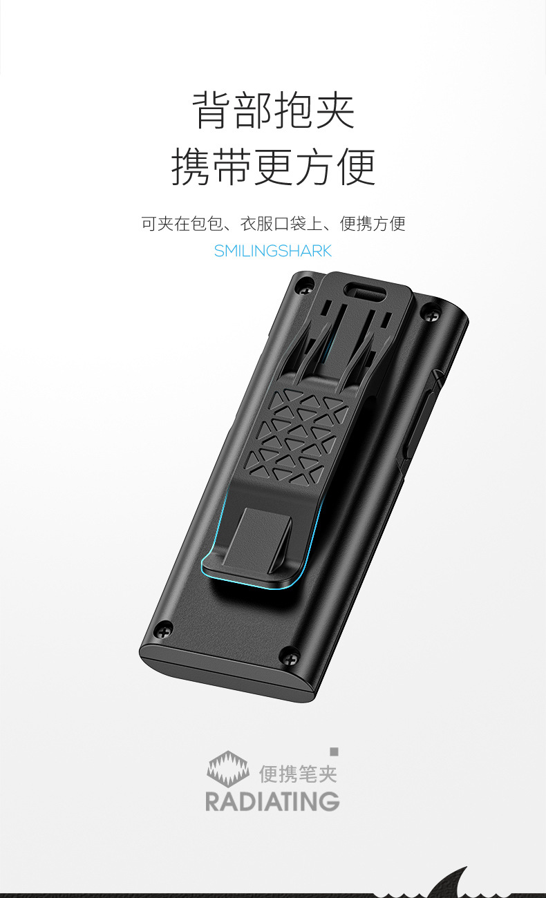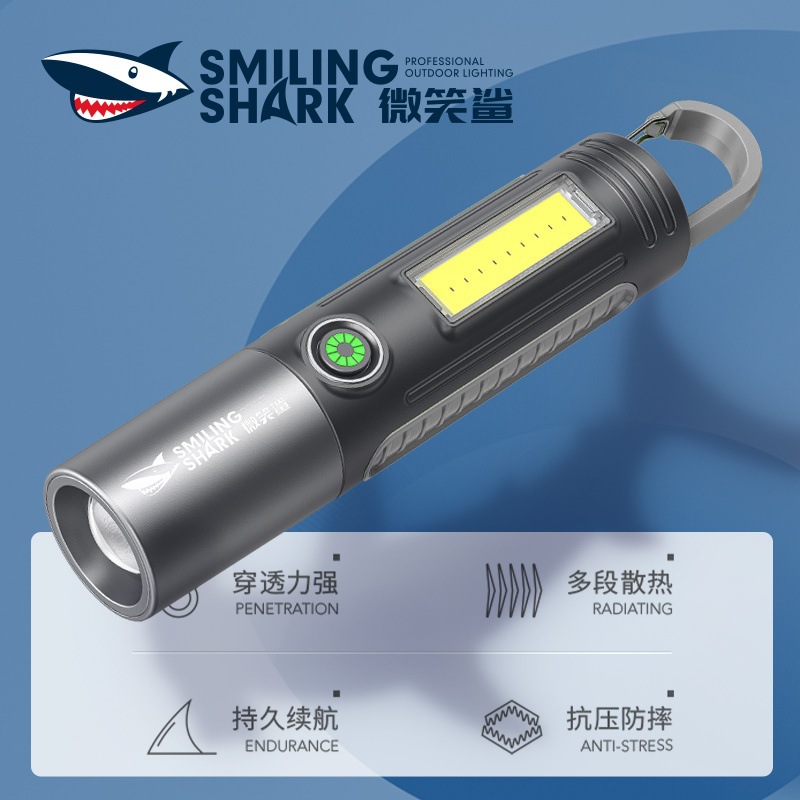 微笑鲨新款户外照明迷你ABS强光手电筒USB充电家用照明灯徒步便携