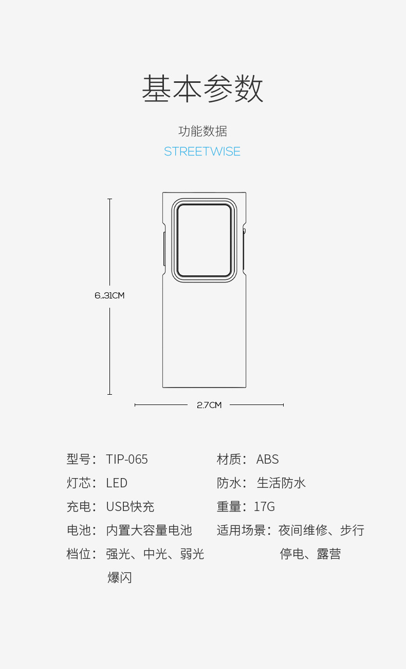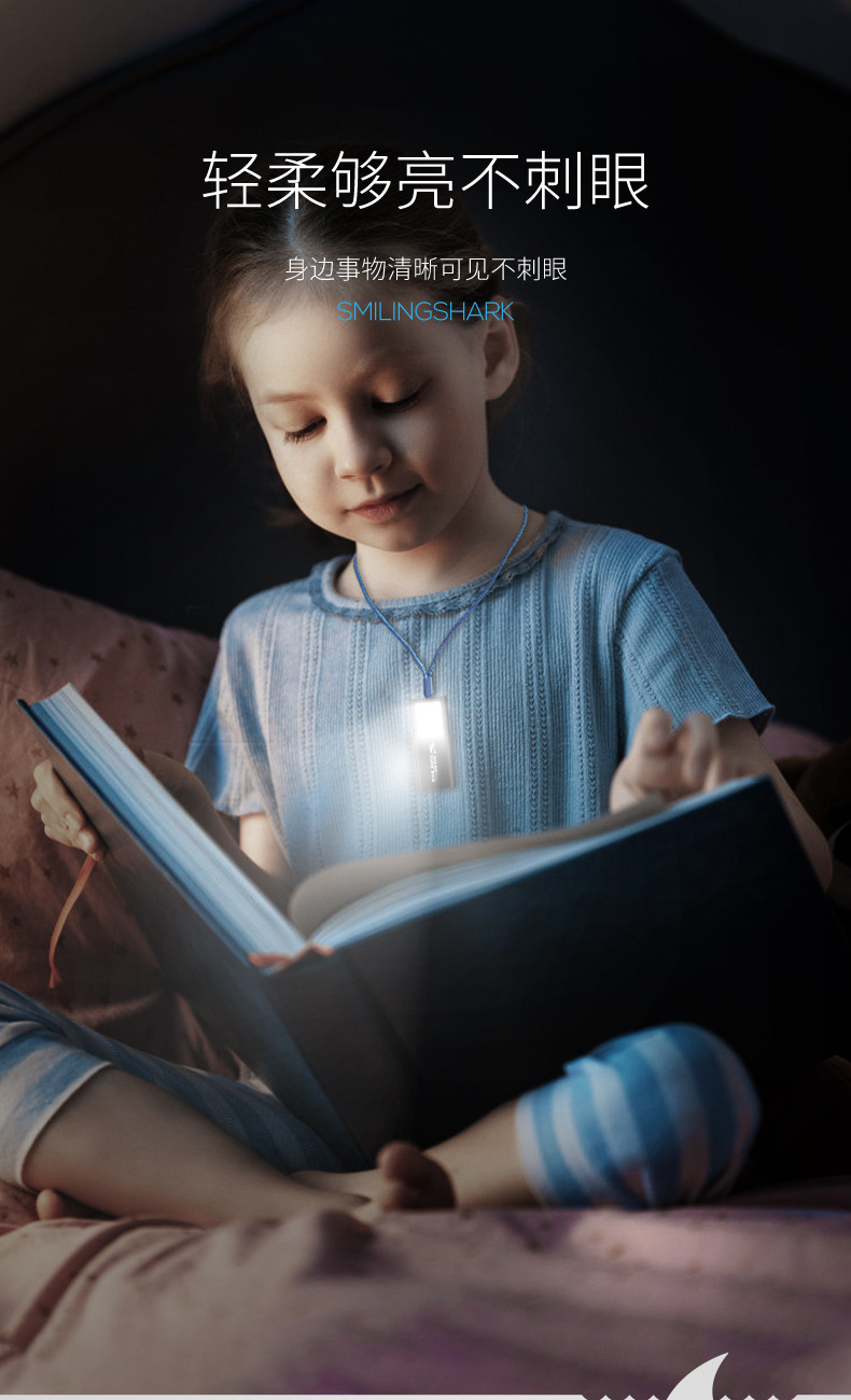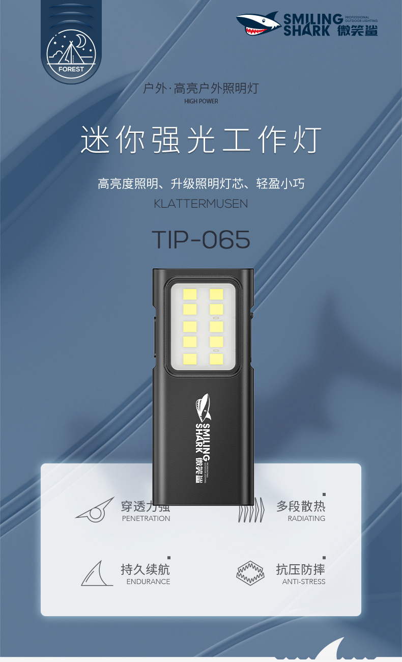微笑鲨新款户外照明迷你ABS强光手电筒USB充电家用照明灯徒步便携