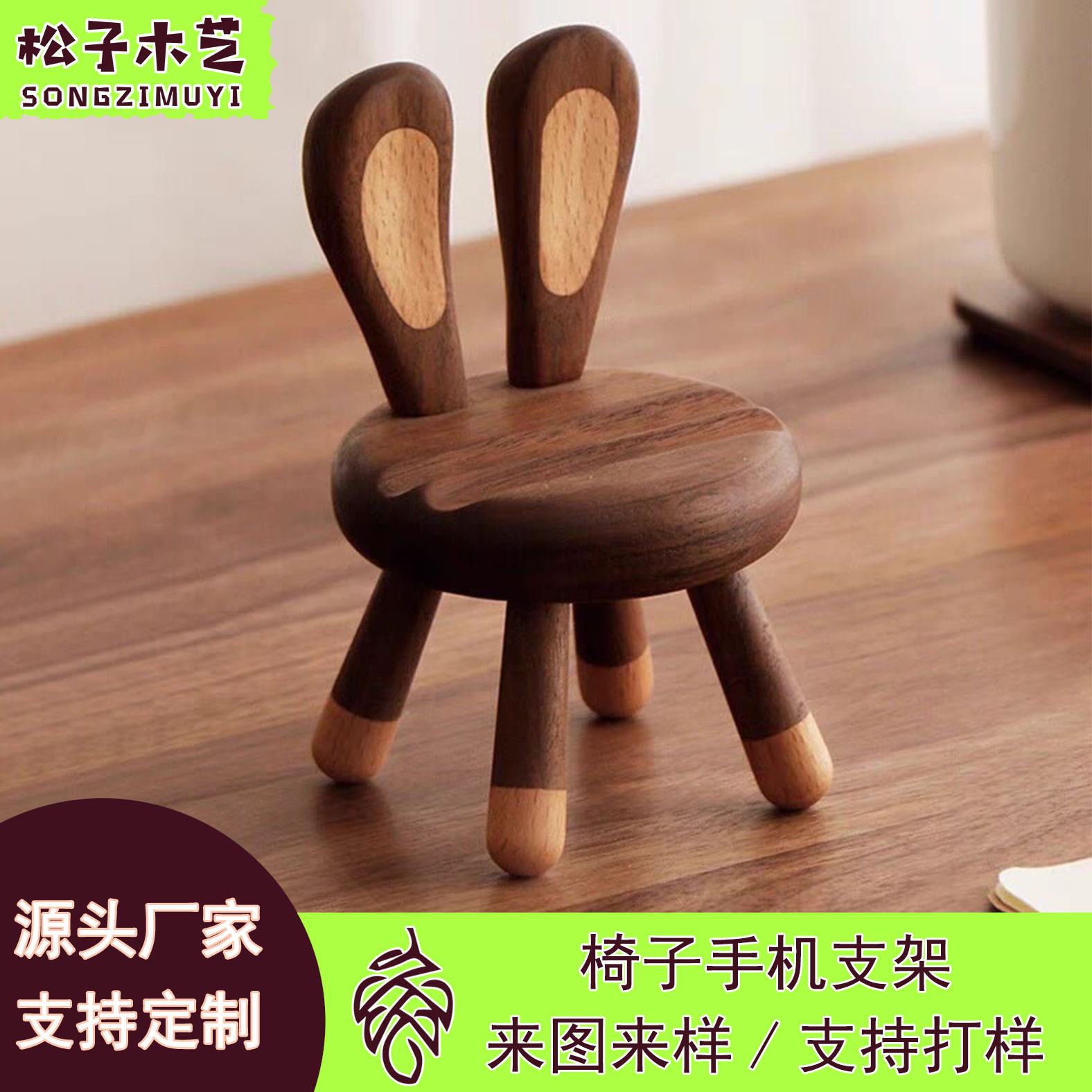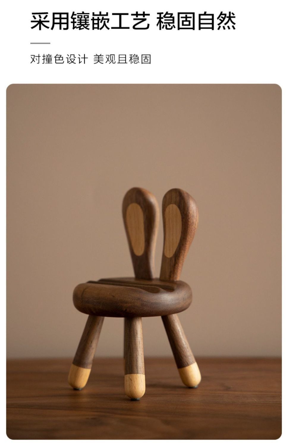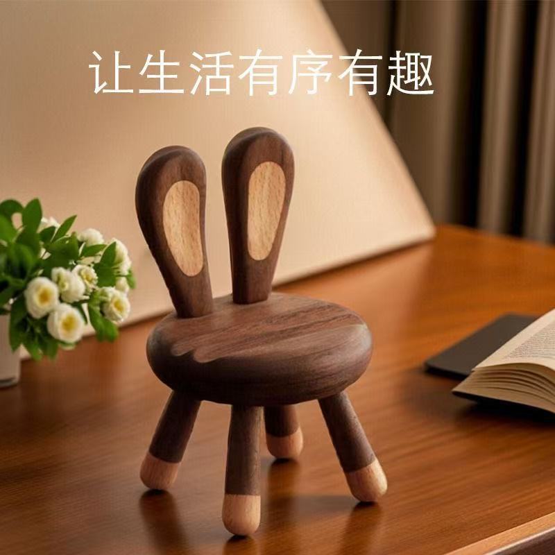 黑胡桃木椅子手机支架创意兔子可爱凳子直播桌面实木实木工艺木艺
