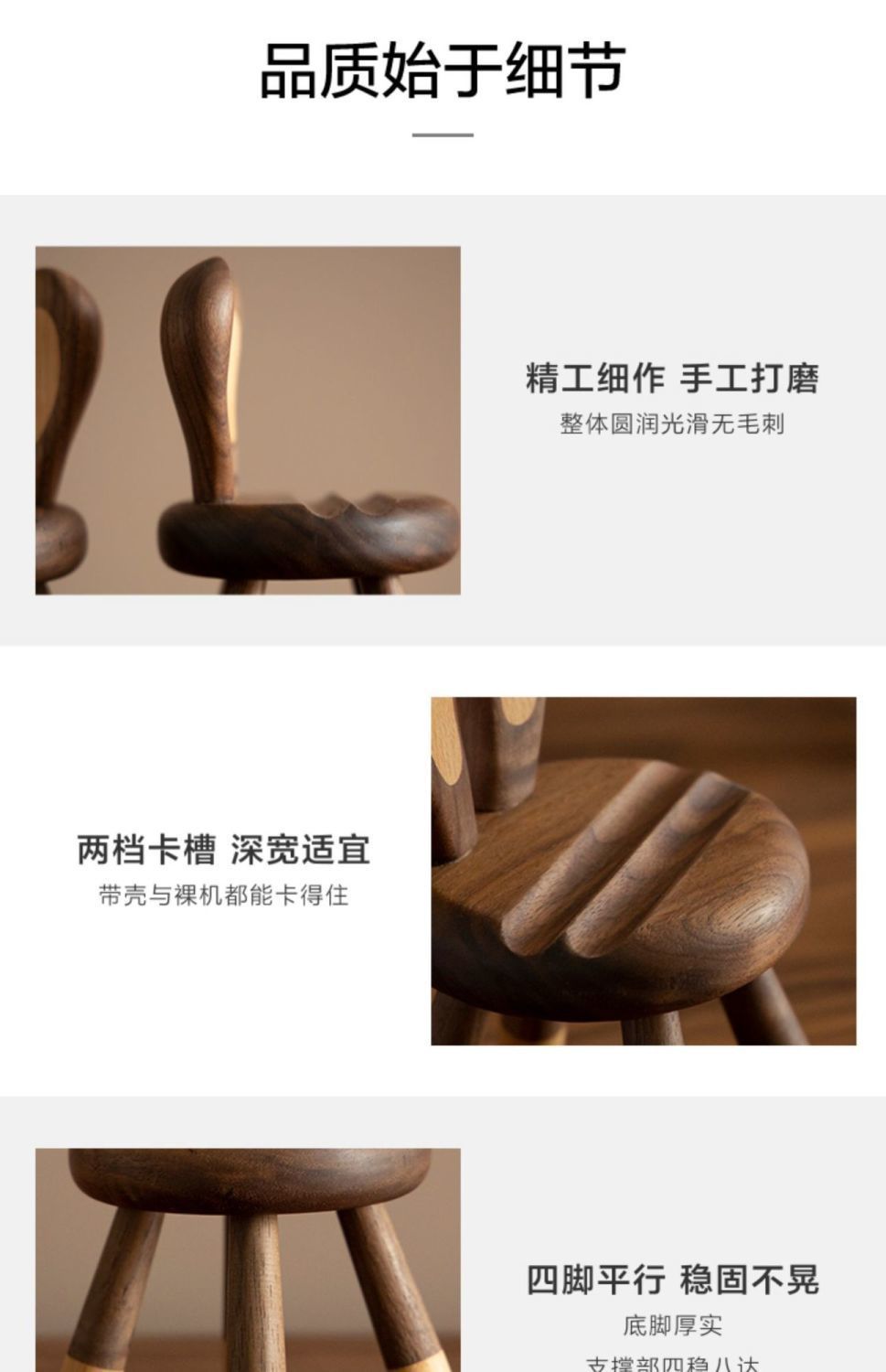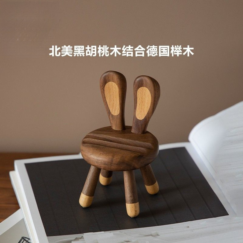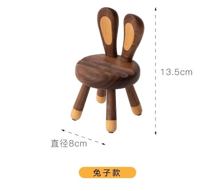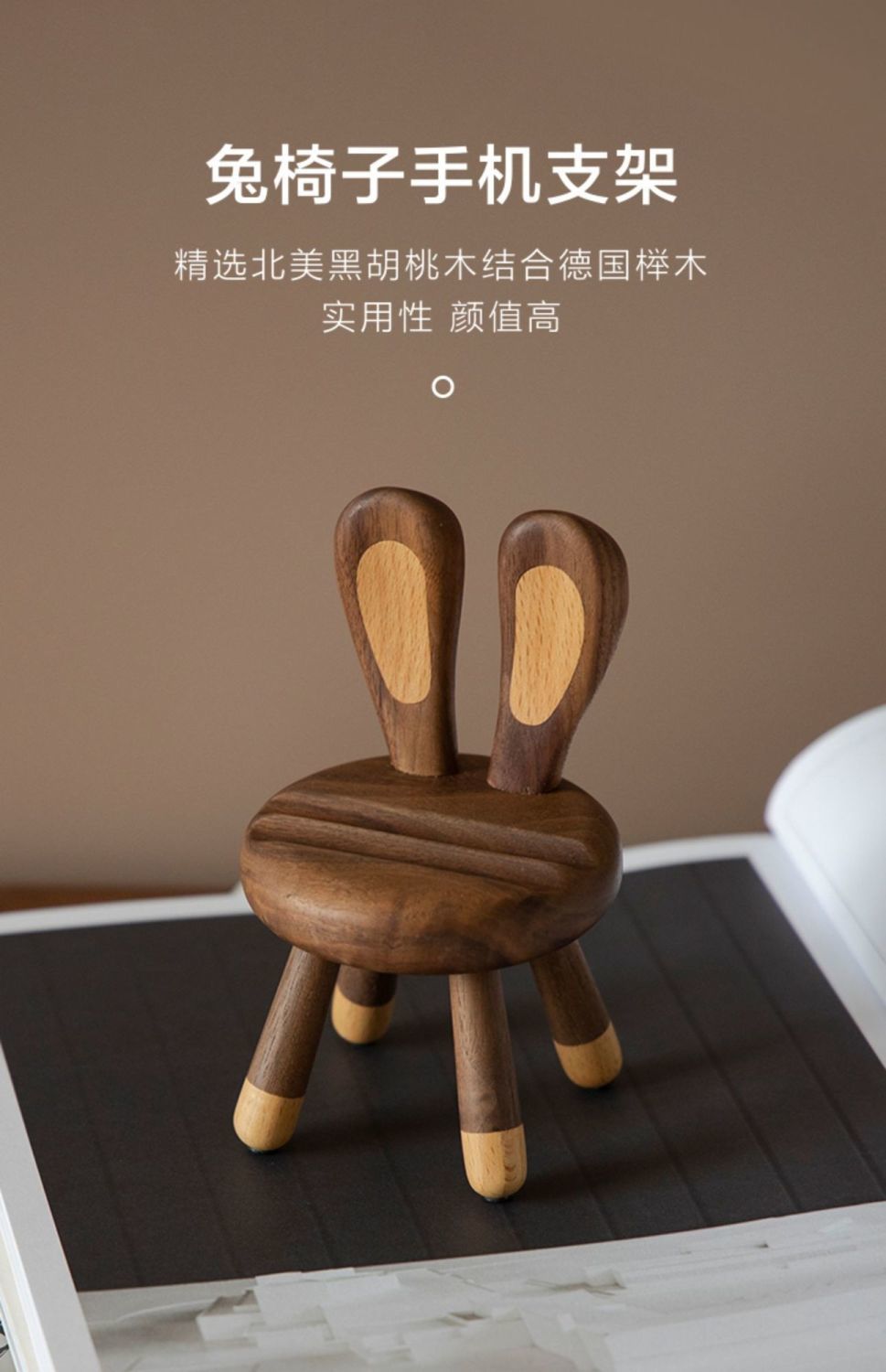黑胡桃木椅子手机支架创意兔子可爱凳子直播桌面实木实木工艺木艺