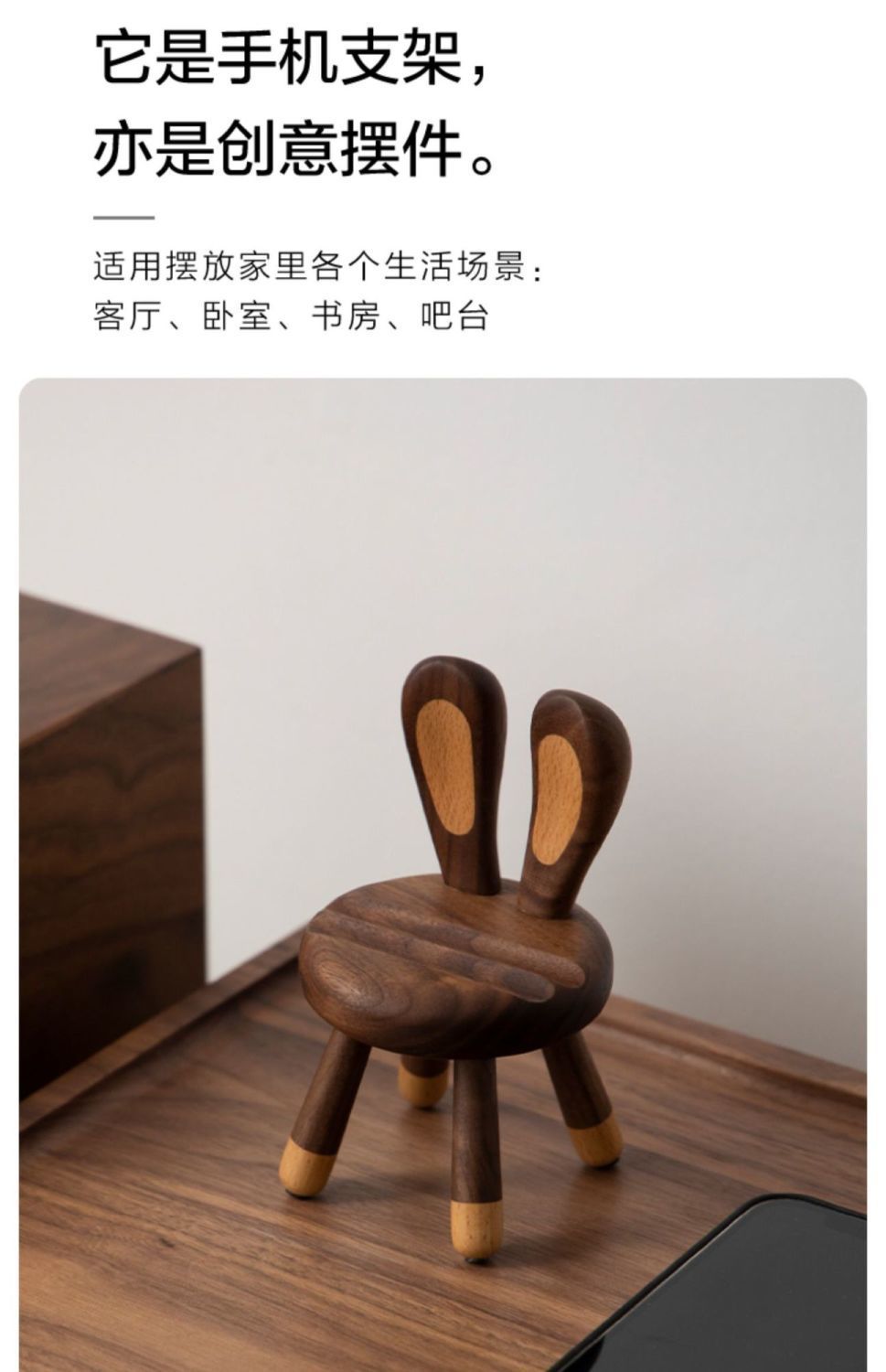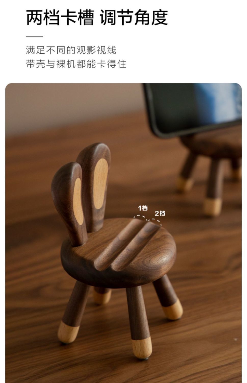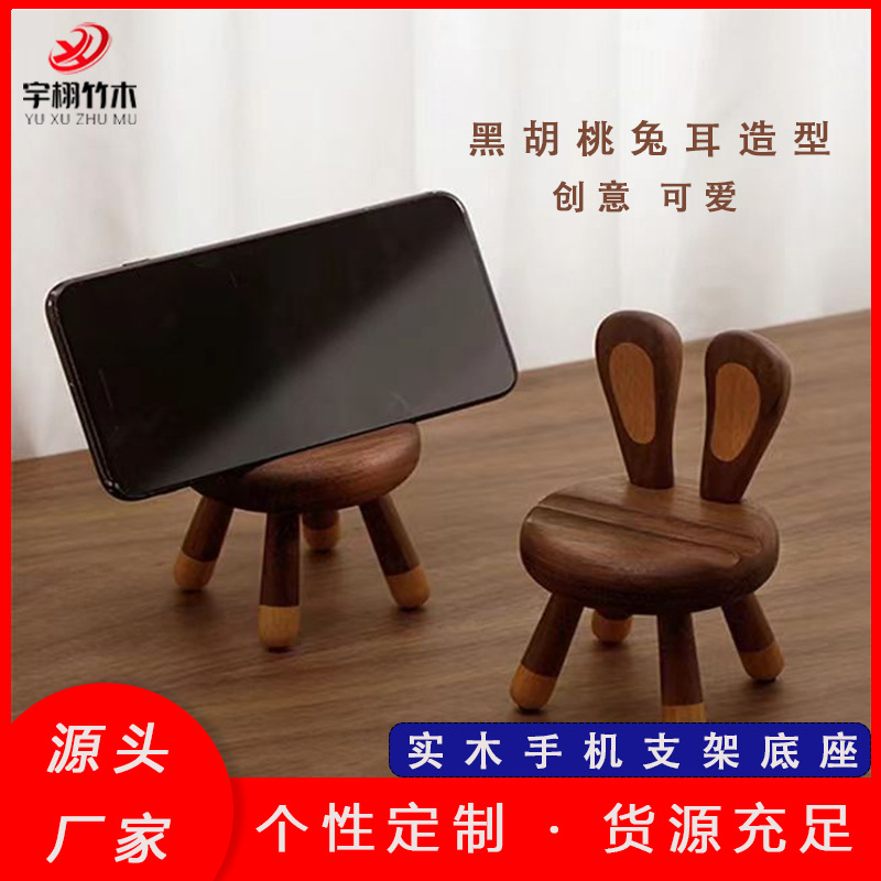 黒胡桃椅子携帯スタンド創意ウサギ可愛い腰掛け漫画生放送デスクトップ実木置物スタンド