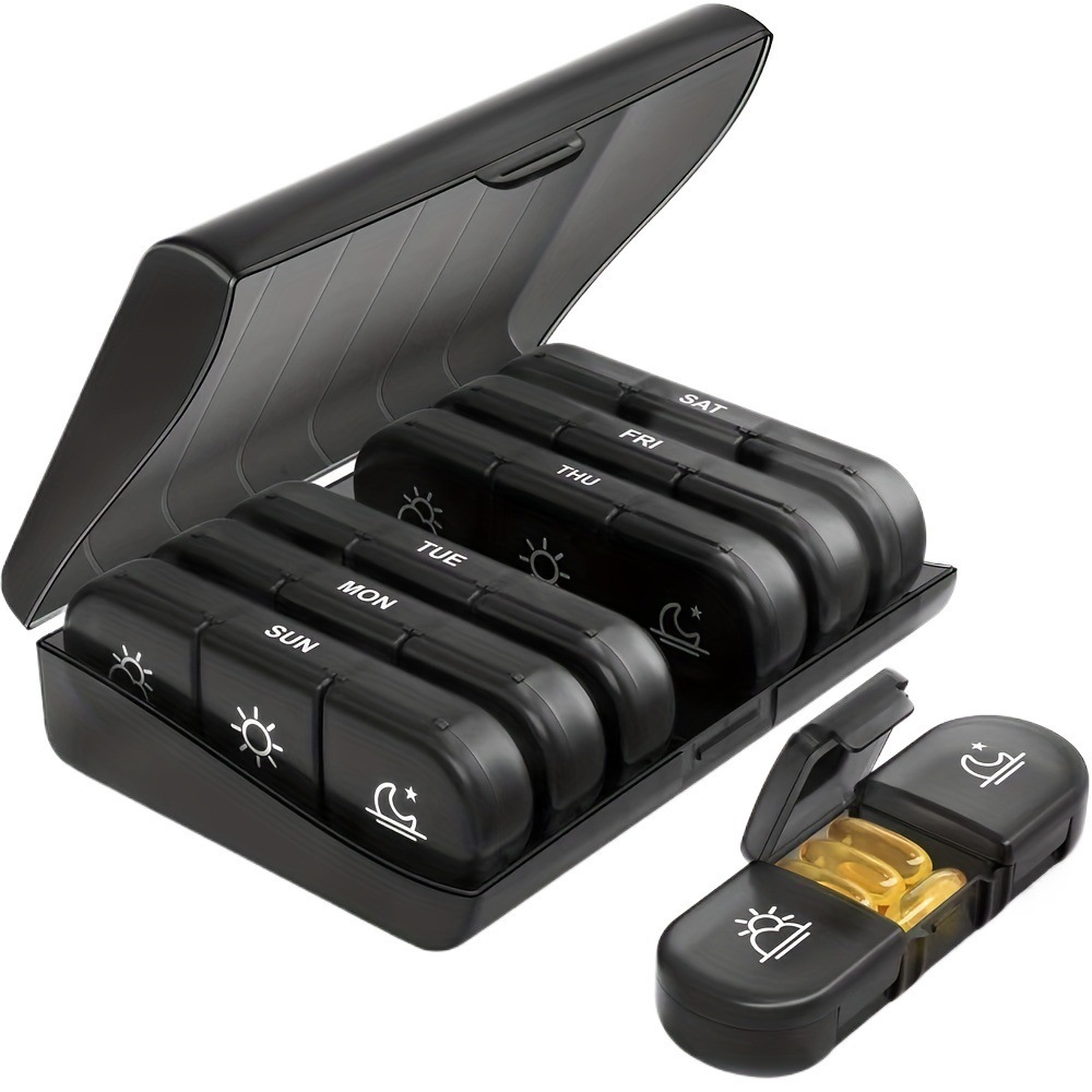 7日間旅行用14グリッド薬箱、携帯用大容量、週間朝晩分類プラスチック収納薬箱