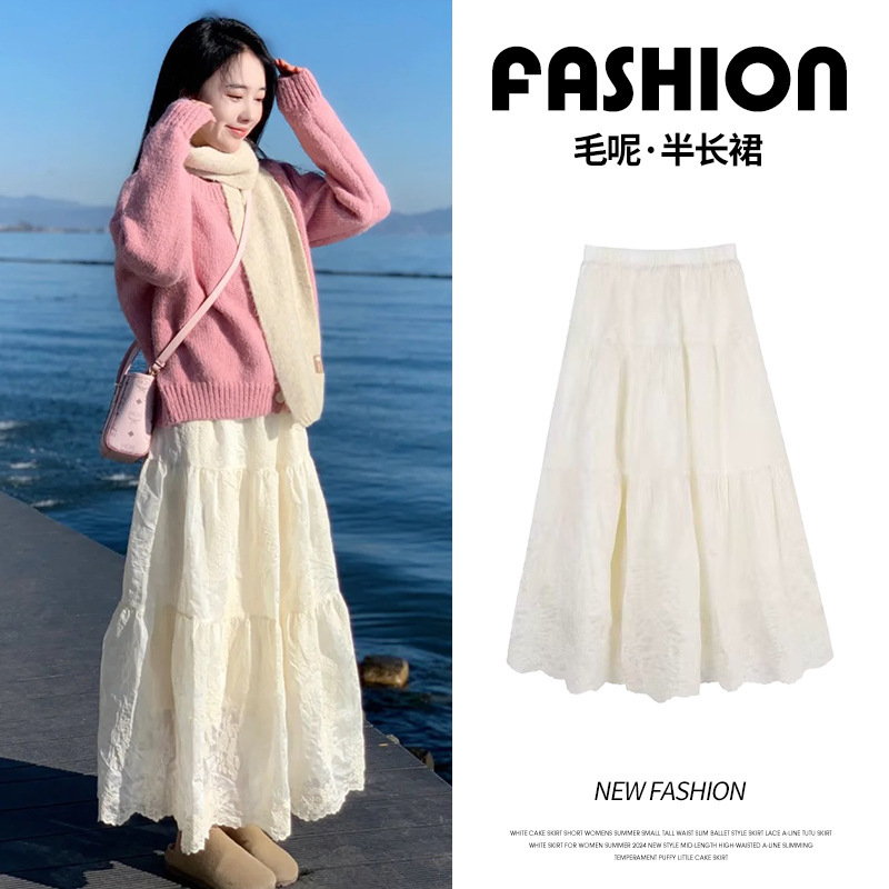 白色奶油秋冬温柔新款加厚小个子蕾丝高腰显瘦修身氛围蛋糕半身裙