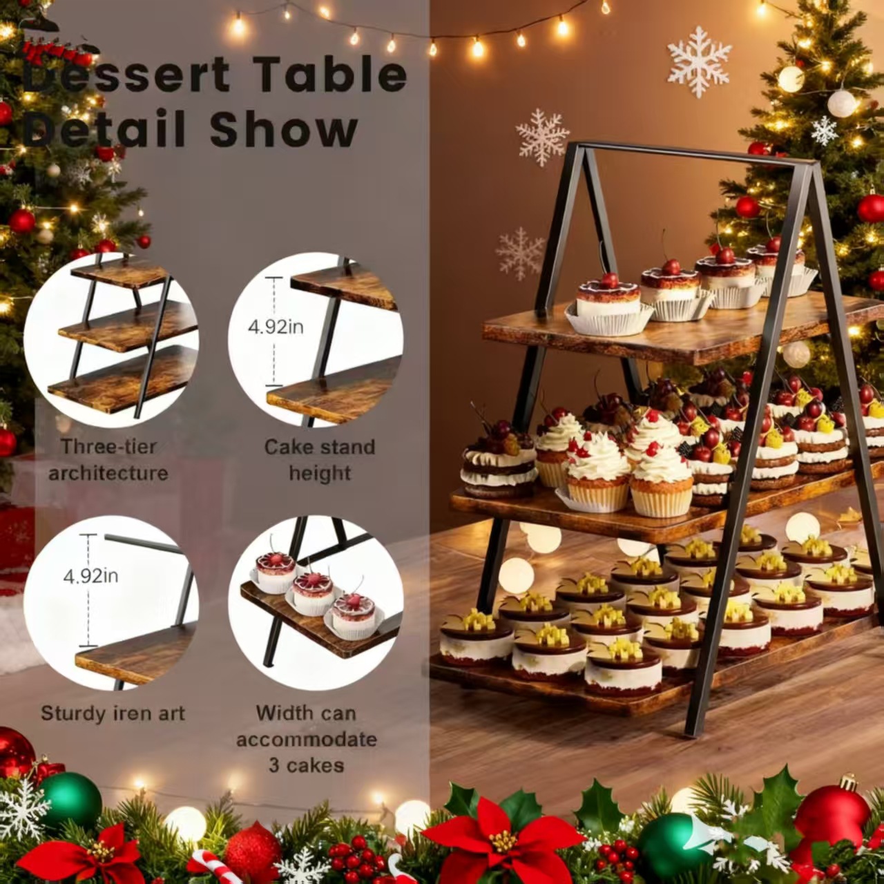 木质桌面置物架铁艺多层蛋糕架梯形木质收纳架纸杯蛋糕架派对装饰